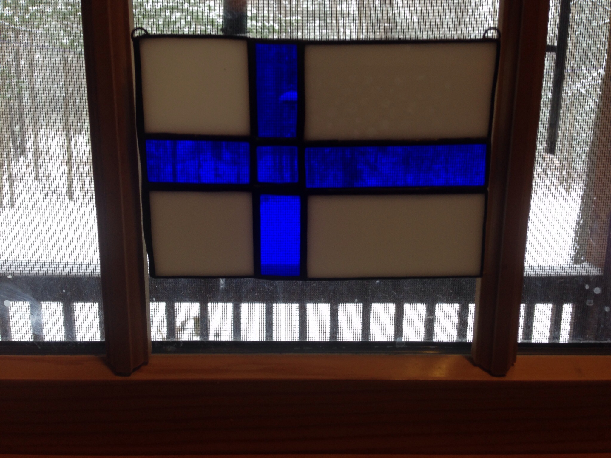 This beautiful piece of stained glass was a gift from some most thoughtful friends. I love it and thought it appropriate that it had a prominent place on my blog!  Home!  When I’m chopping and preparing food or doing dishes I can enjoy this little piece of Finnishness.  💙