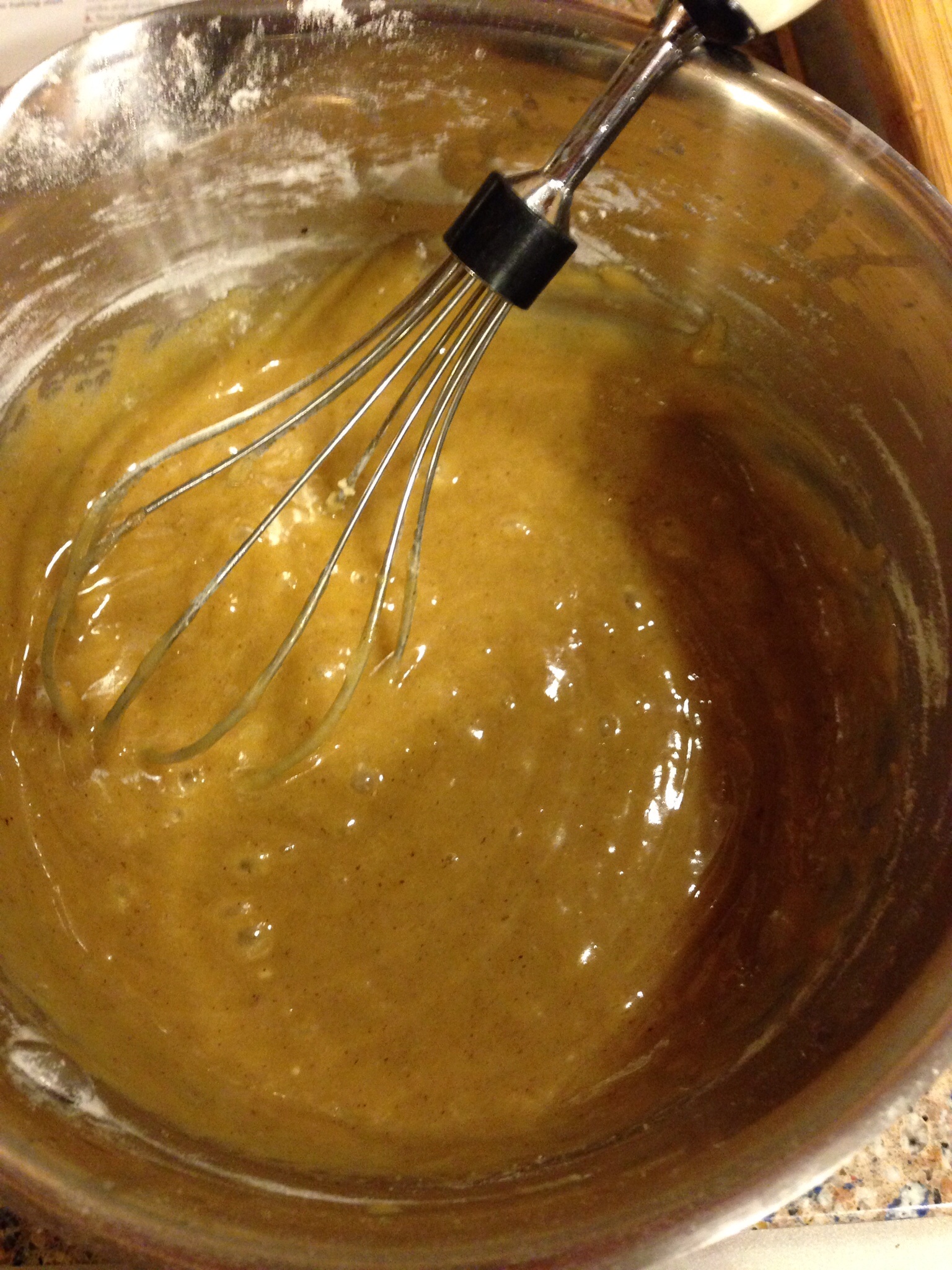 I mixed everything in one saucepan. Melt the butter in the saucepan swirling occasionally until the butter begins to brown. Remove from the heat and whisk in the brown sugar and vanilla until the sugar is dissolved. Allow to cool briefly and whisk in the 2 eggs until well combined.