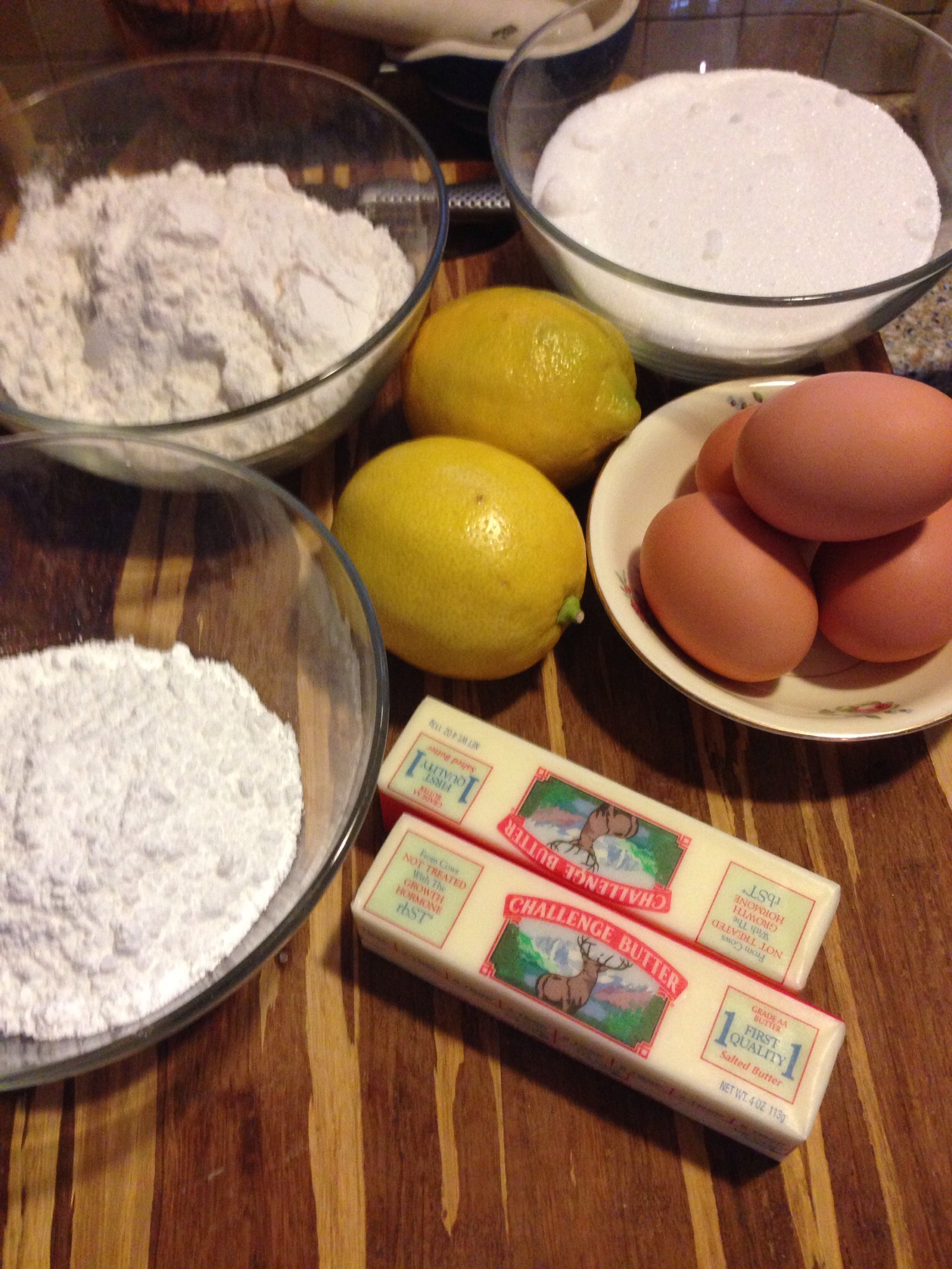 This is Super Bowl Sunday and I was asked to bring something sweet to the party. I thought about making football shaped sugar cookies or some clever sports themed cake but vetoed both for lemon bars and chocolate chip cookies. I have had this lemon bar recipe for ages and am not sure where I first got it. Simple to make. Very rich. Very sweet.