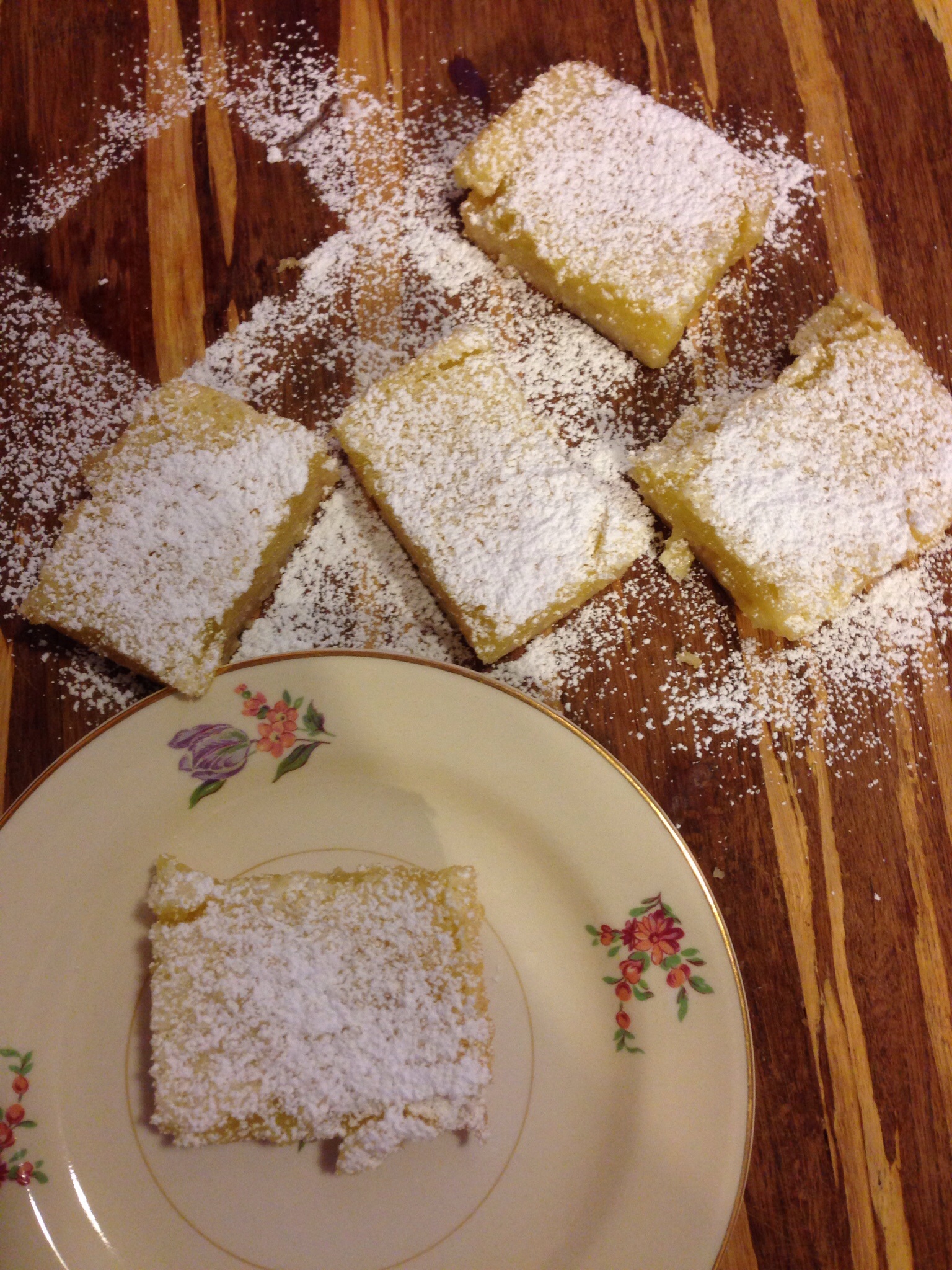 Put the pan on a wire rack and allow to cool completely.  Cut into bars and sprinkle with powdered sugar.