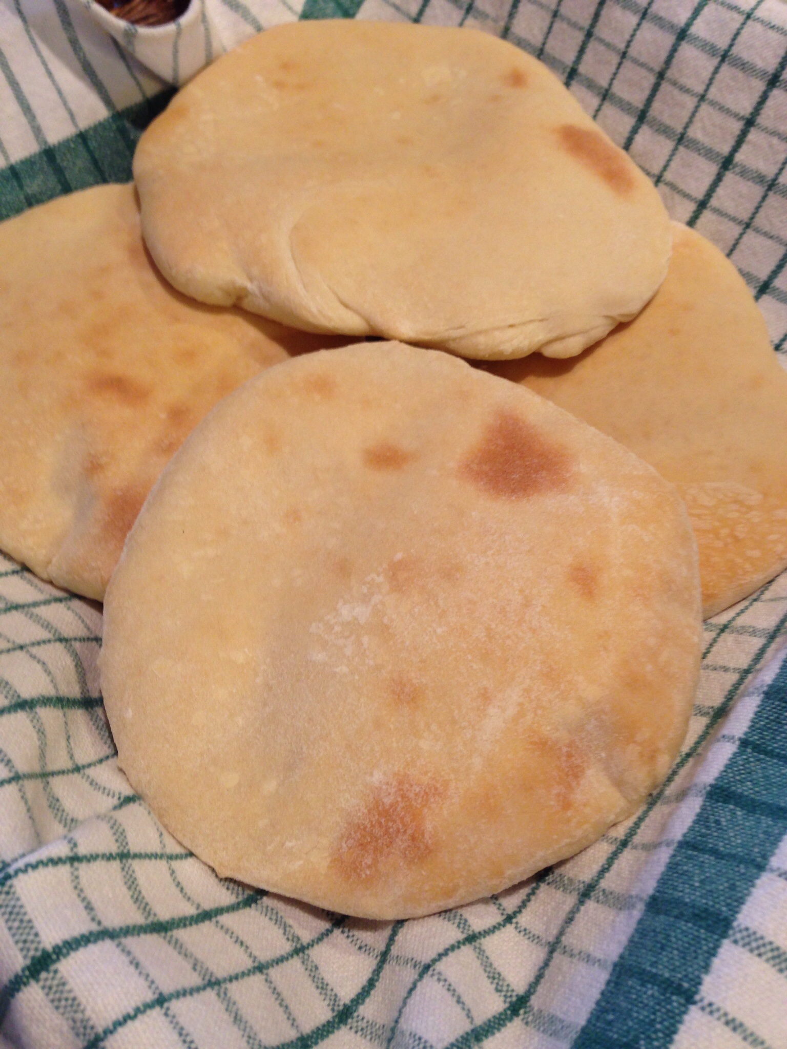 I’ve made several of the breads recipes; it would be great fun to try them all. I’ve given this book as a gift more than once. If you see it on the shelf at your local book store I’d recommend buying it. Today I decided to take a stab at the Pita bread. Several years ago a friend was staying with us and I decided to attempt an authentic Mexican meal including homemade tortillas. Well, our friend was kind and said the tortillas were great, but in reality they were awful! Like plastic frisbees. Here’s hoping my pita bread will be better than my tortillas. If they are a success my plan is to make lamb meatballs and yogurt cucumber sauce to serve with them.