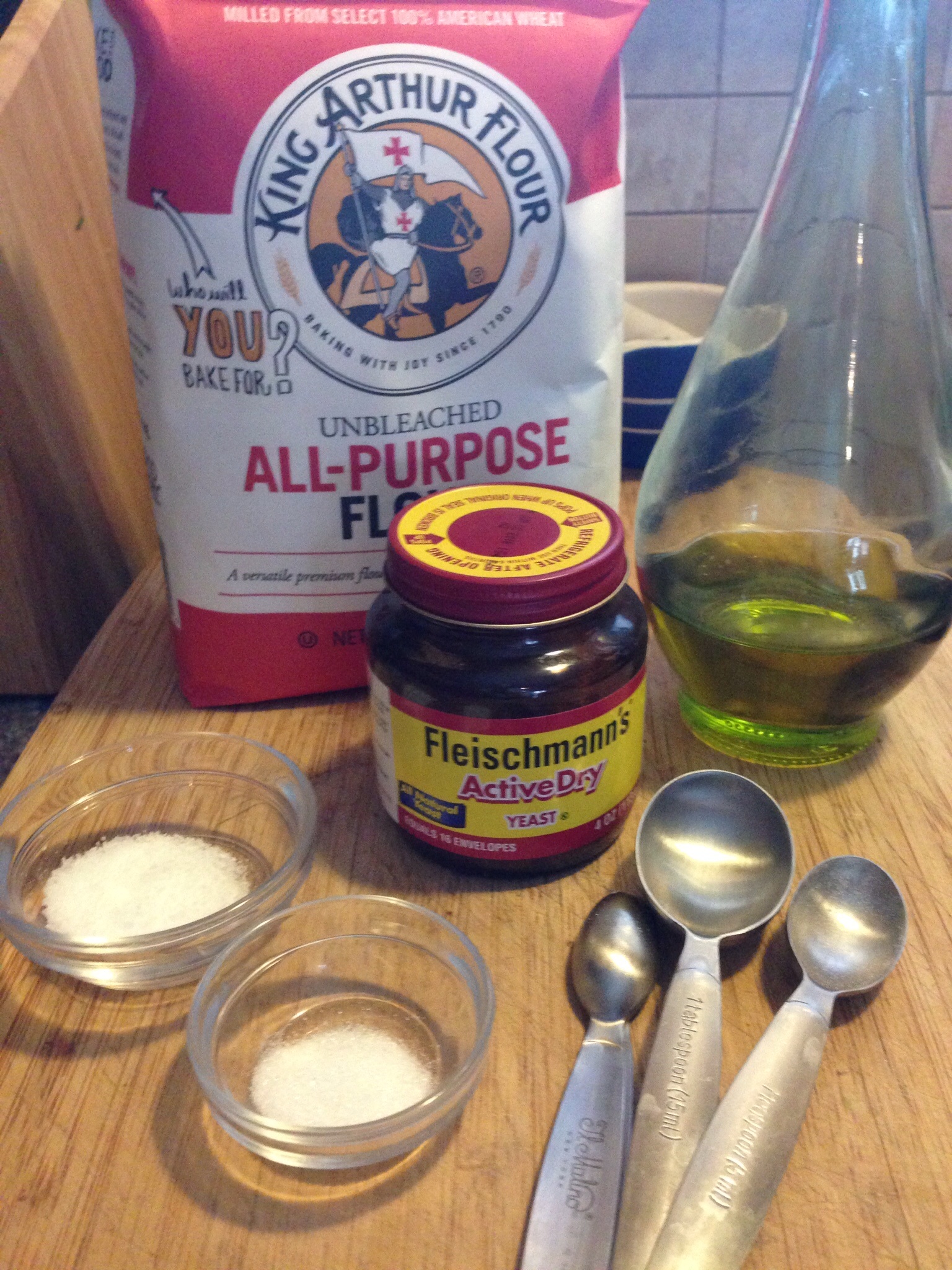 Mix the flour and salt in a large bowl and make a well in the center. Pour the yeast and olive oil into the well.