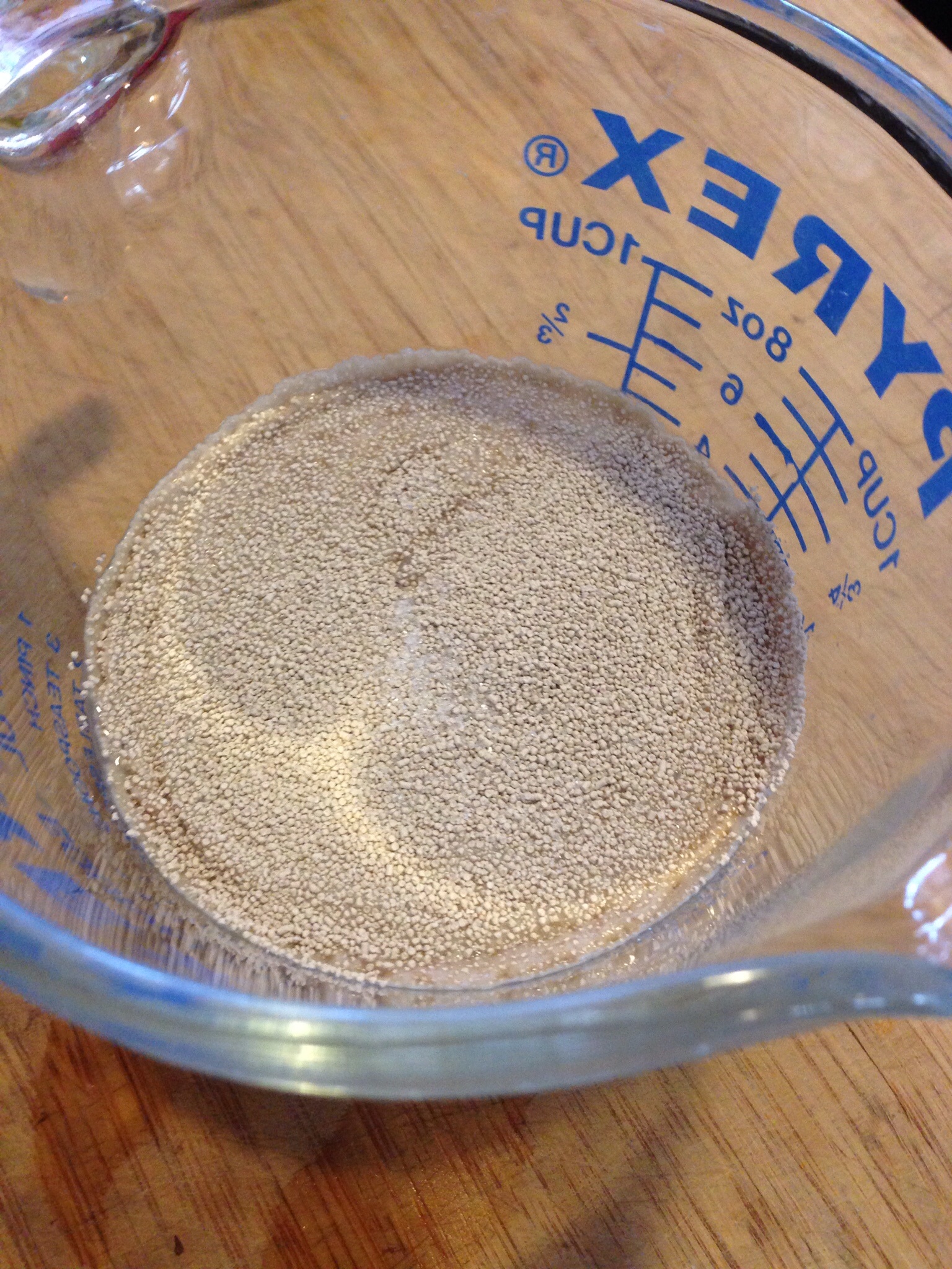 Sprinkle the yeast and sugar into 1/2 cup of the water and leave for 5 minutes. Stir to dissolve.