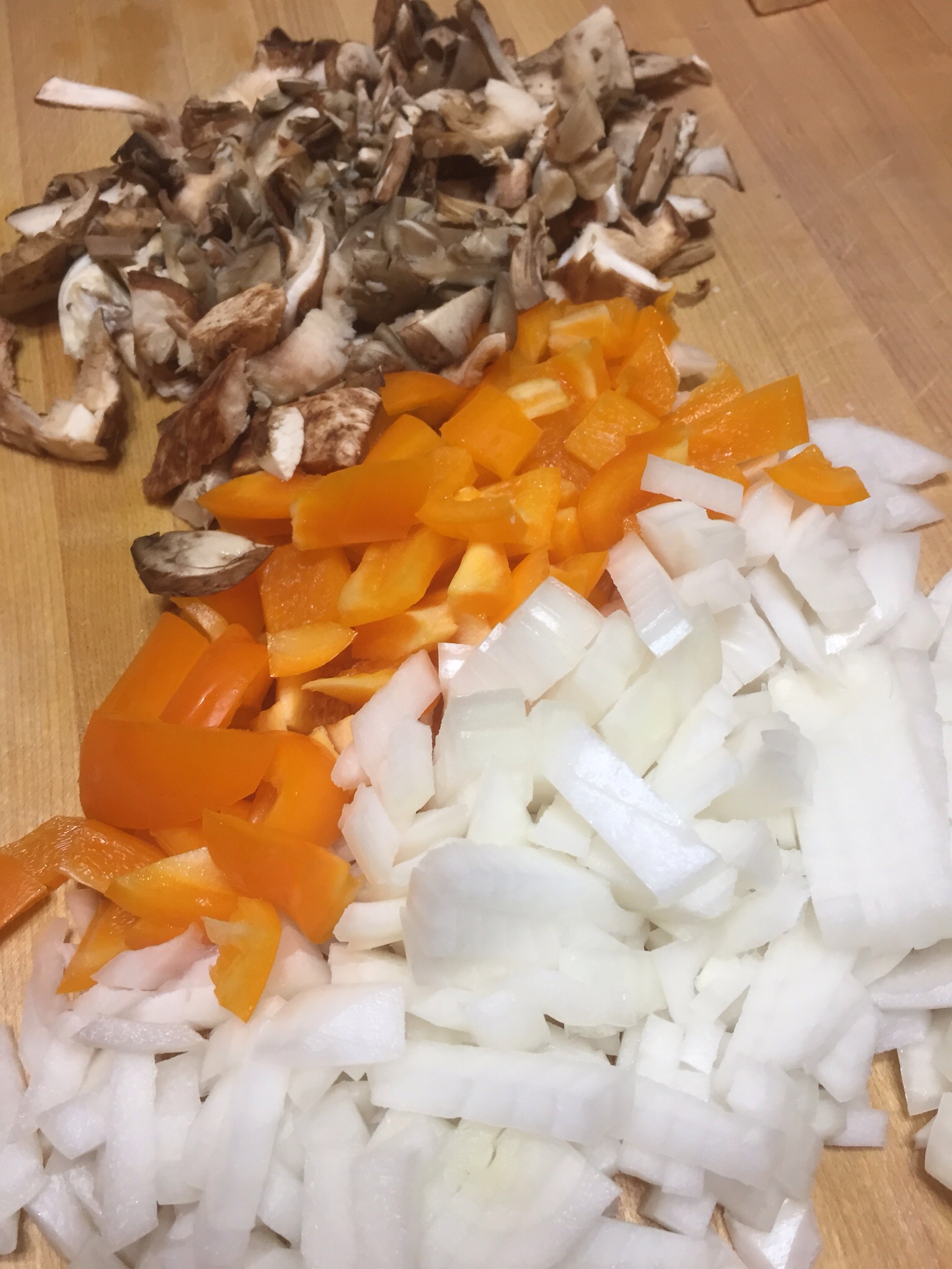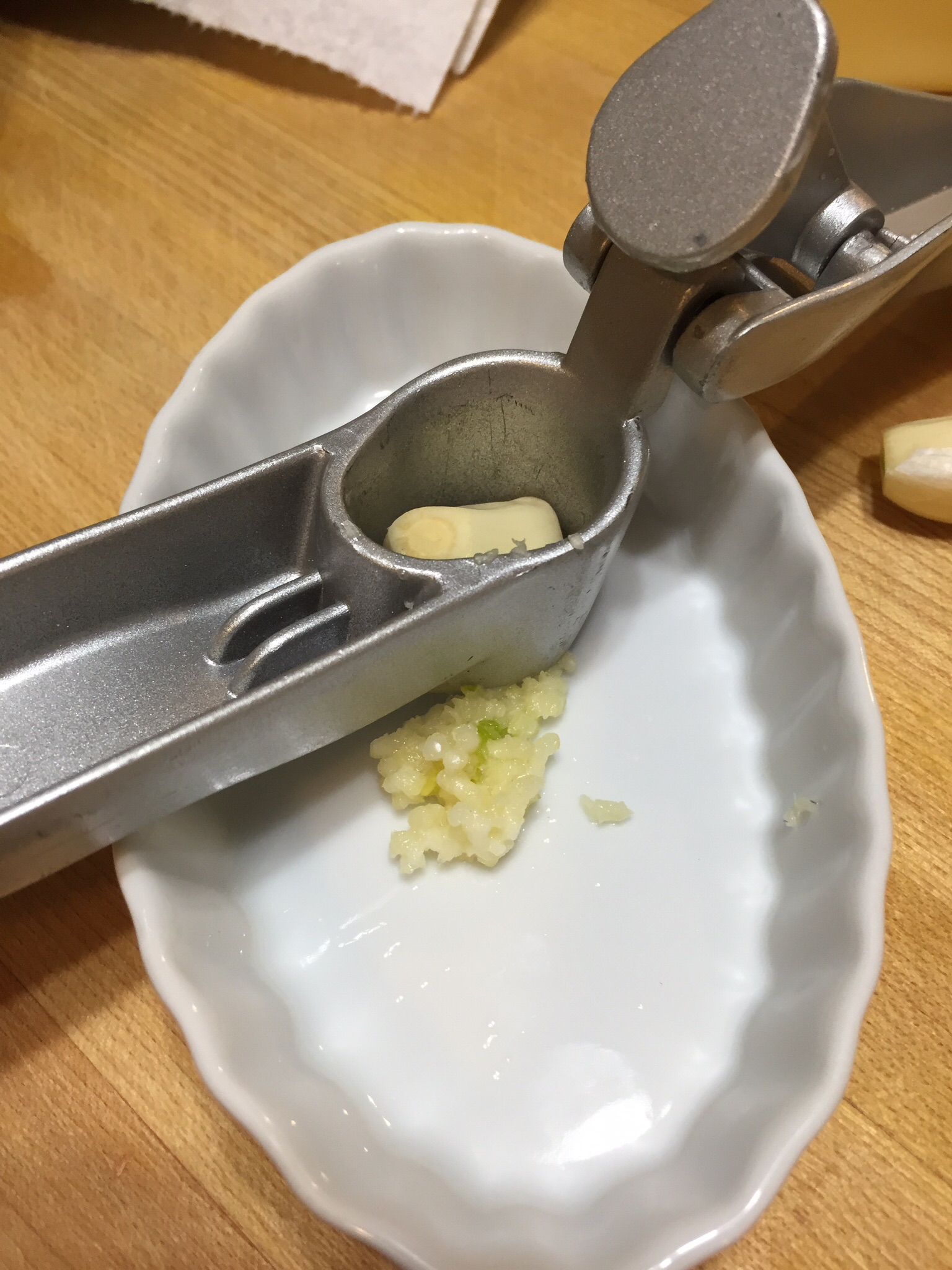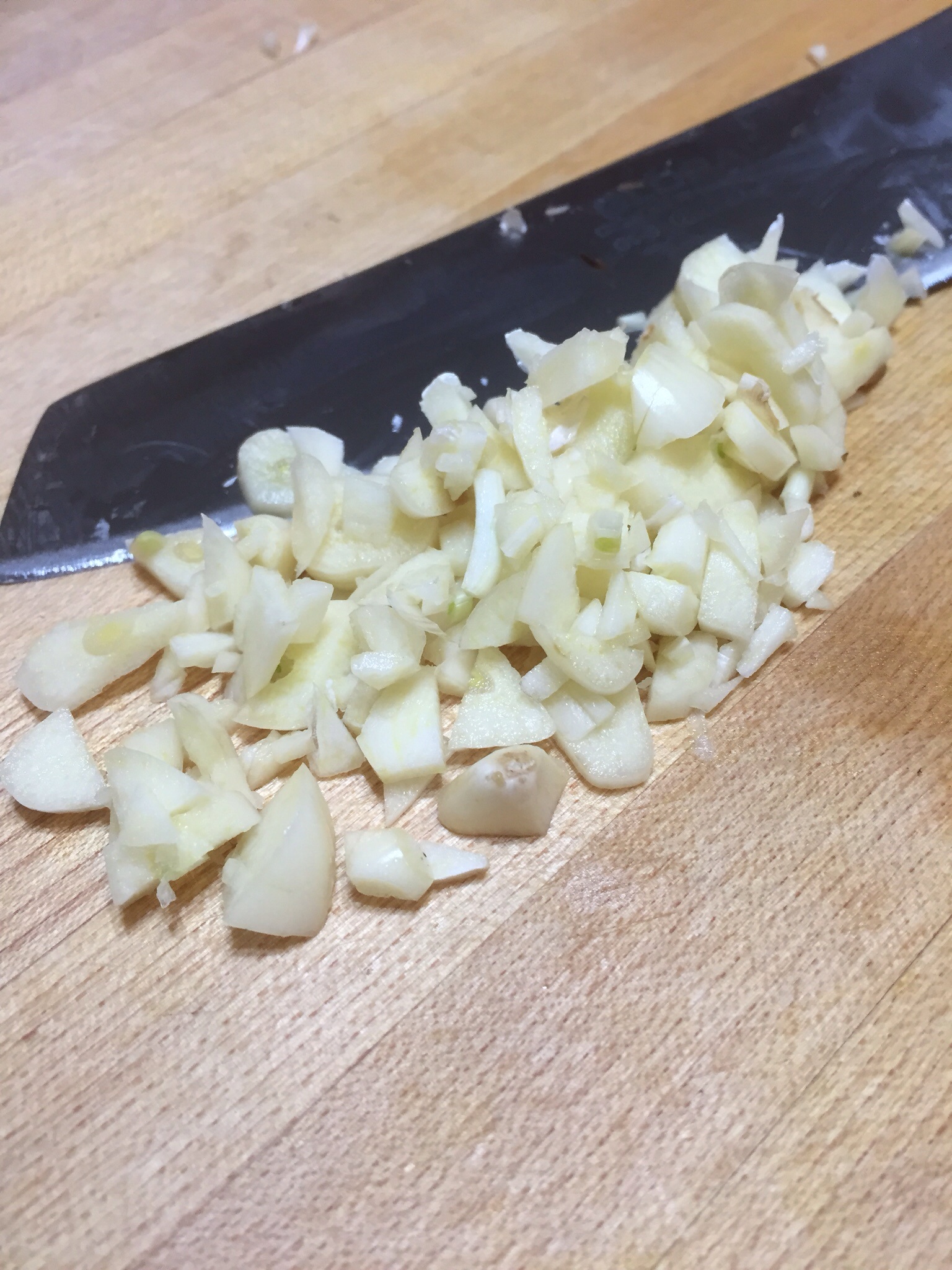 This dish comes together pretty quickly so prepping all the ingredients before hand is important. Press or mince the garlic and dice the shallots.