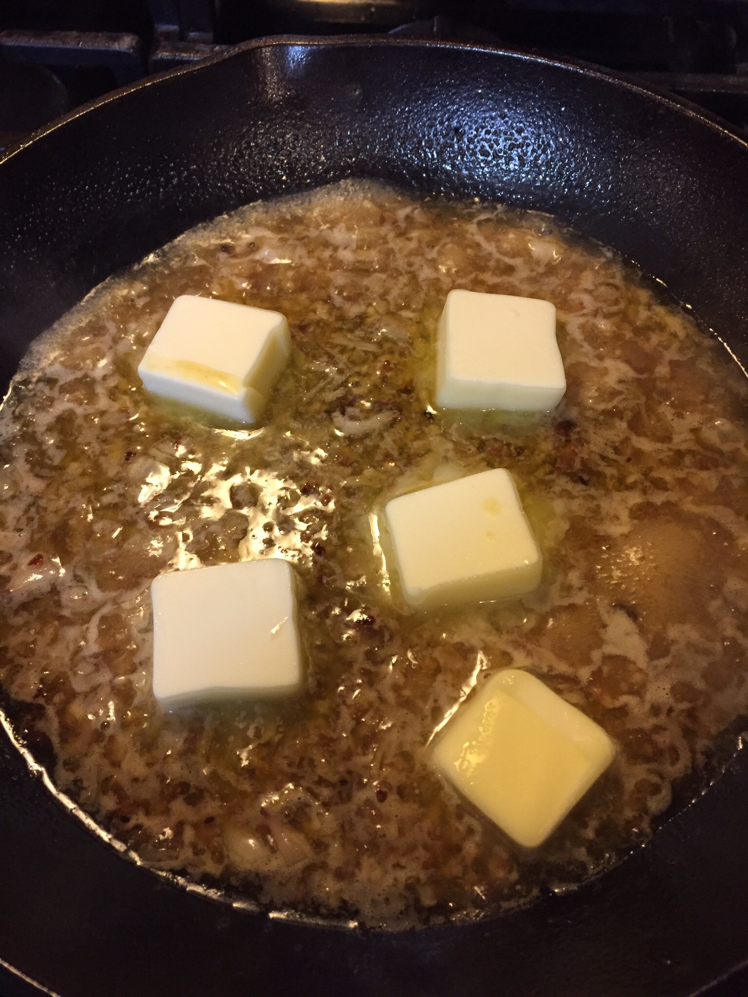 Once the butter has melted stir in the parsley, lemon juice and zest, and return the shrimp to the skillet. Remove from the heat and set aside until the pasta has finished cooking.