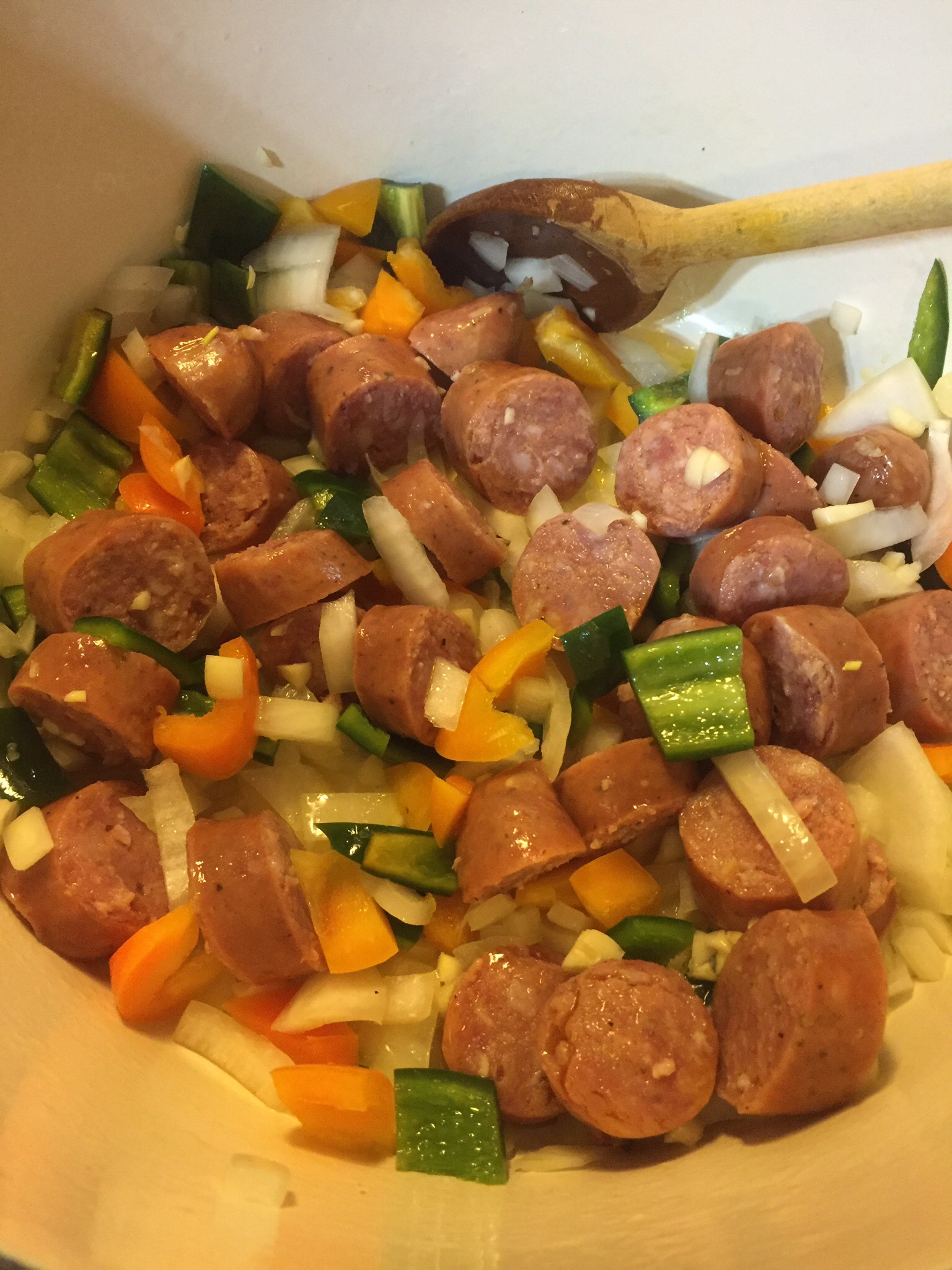 Put a pot of salted water on the stove and bring it to a boil for cooking your pasta. Heat the olive oil in a heavy skillet over medium high heat. When the oil starts to shimmer cook your shrimp. Cook in batches to avoid crowding them in your pan. Cook the shrimp until they start to turn pink, then turn them. Once cooked, they only take a minute, set them aside on a plate.