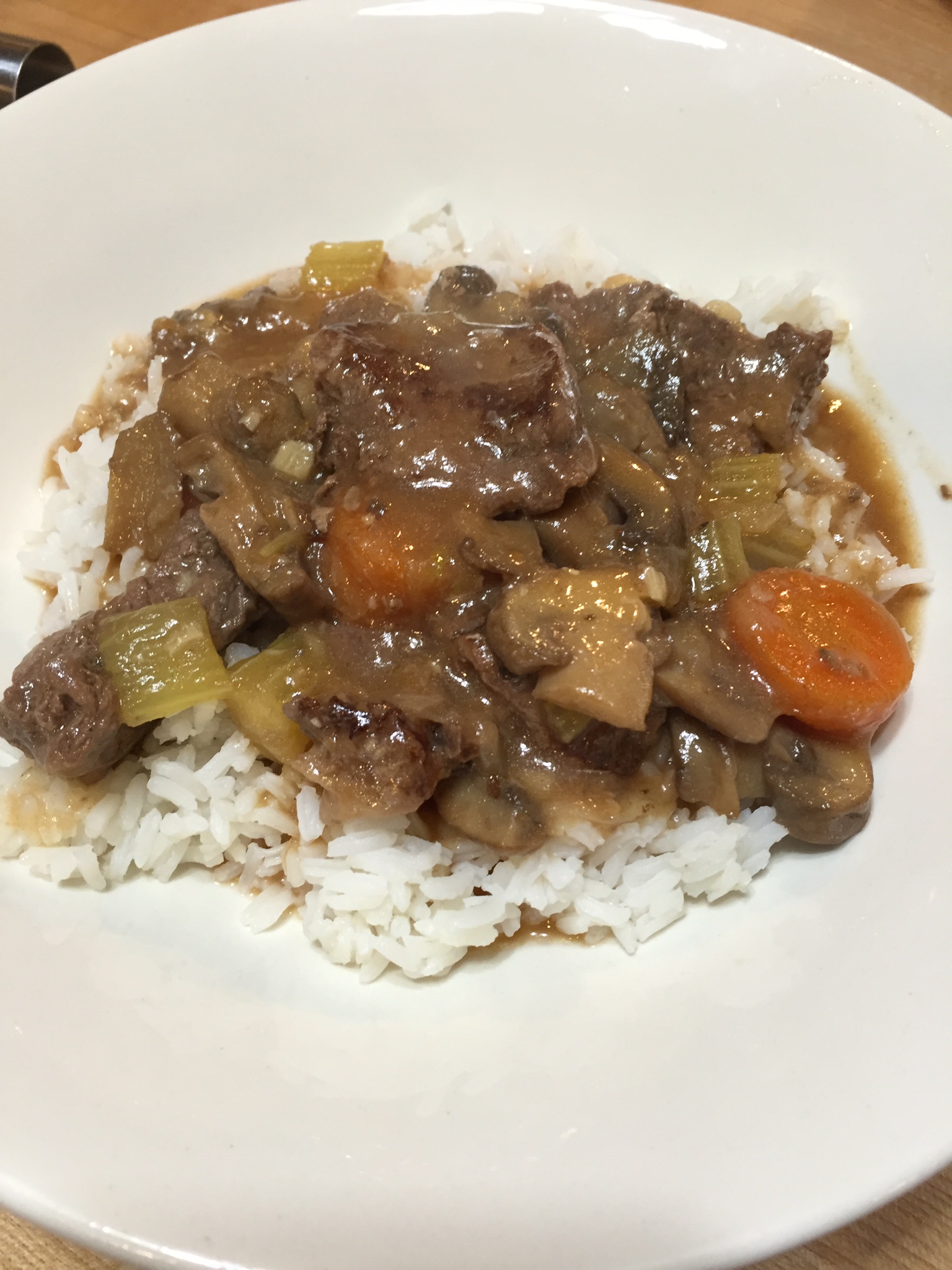 Remove the lid and cook for 30 more minutes allowing some of the liquid to evaporate and the meat to brown. The meat is very tender and the broth flavorful. When you plate this ladle some broth over the meat and vegetables.