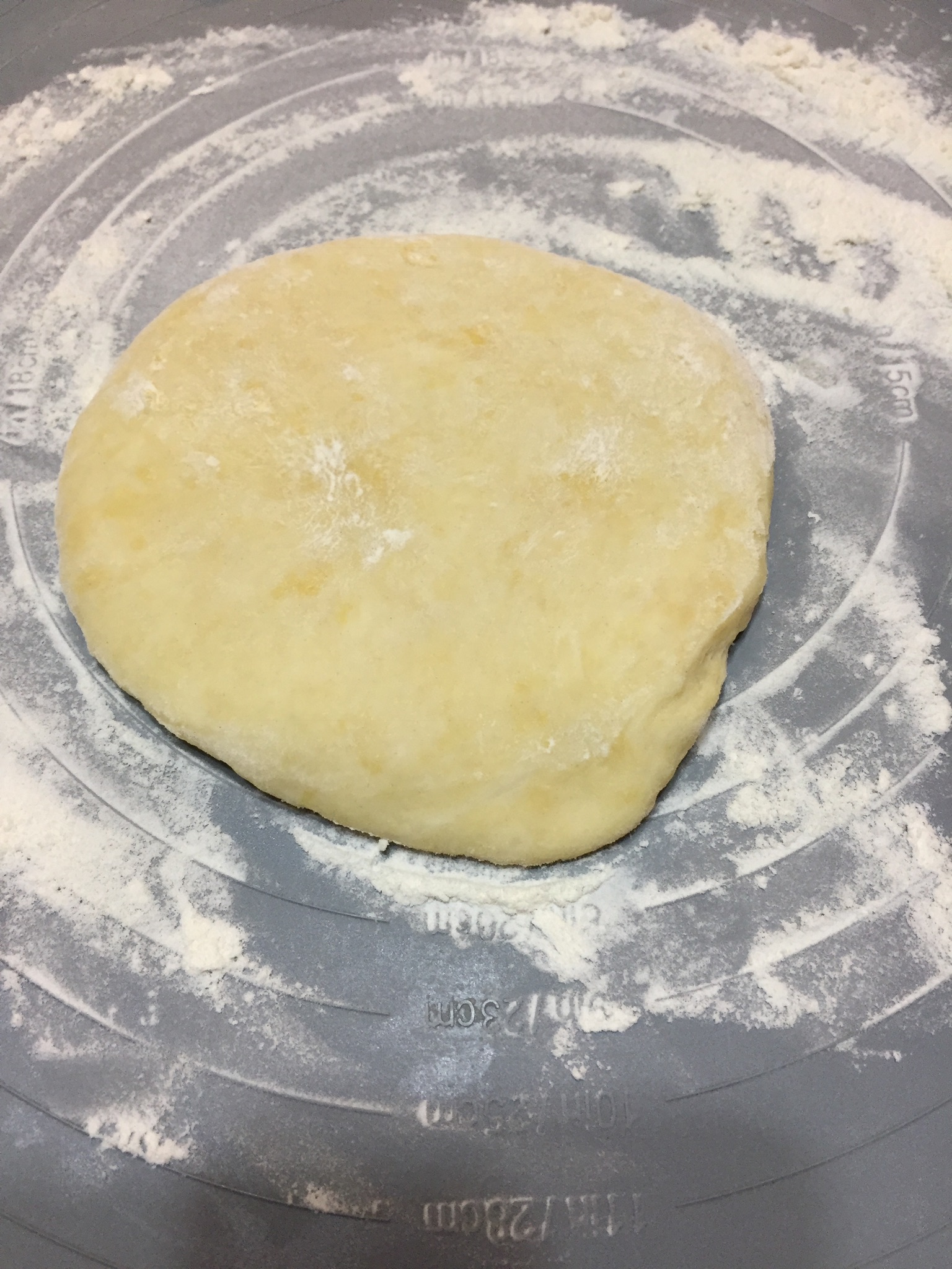 Cut your dough into six pieces. On a lightly floured surface use you hand to flatten and shape the dough into a disc. Keep the discs covered with a clean kitchen towel or Saran Wrap until you are ready to fry them.