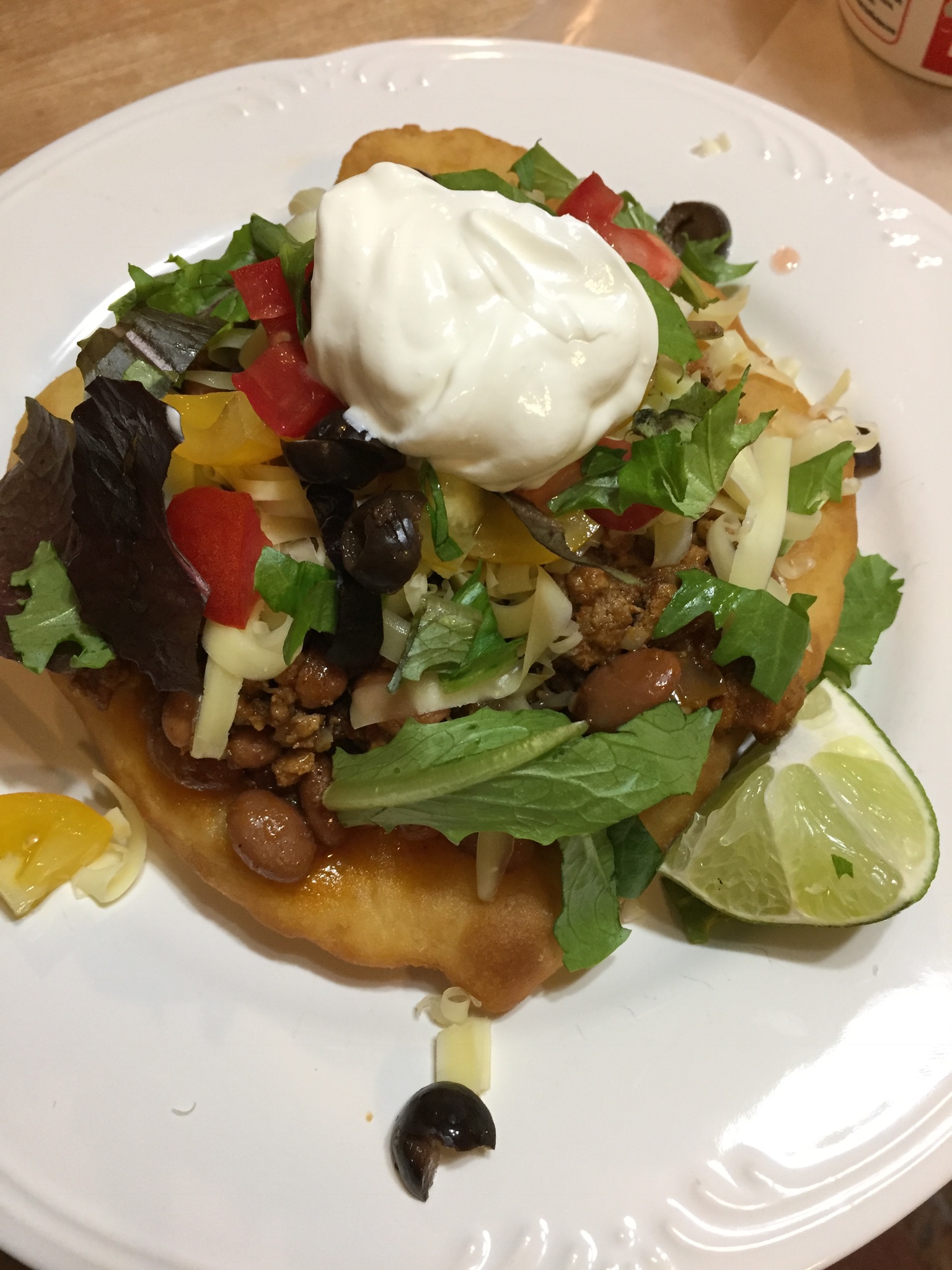 NOTE: You can increase or decrease the seasoning based on your personal taste. Mine were a little spicy tonight. Or use your own favorite recipe for tacos. Like I said, what makes these so special is the fry bread.