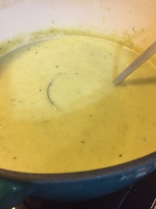 I bought about 25 pounds of asparagus and turned the majority of it into pickled spears…20 pint and a half jars. I used taller jars allowing for longer spears but you still trim off several inches. So as not to let that all go to waste I made asparagus soup. Recipe follows.