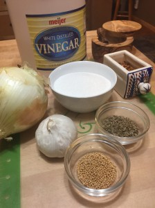 Once the asparagus is trimmed, brine is simmering and onions and garlic are ready begin filling your jars. I find it easiest to lay a sterilized jar on it’s side to fill it with spears adding some onion slices and a couple cloves of garlic to each jar. Once the jar is filled top off with hot brine leaving 1/4 inch of head space. Seal the jars.