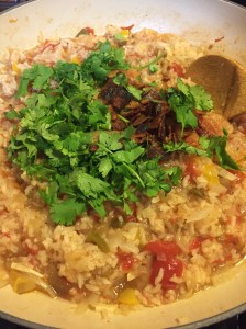 Bring to a boil. Reduce the heat, cover and simmer for 30-35 minutes until all of the liquid is absorbed. Once the rice is done stir in the crumbled crisp bacon and cilantro.