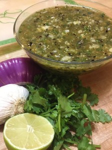 Dish up and enjoy. This was a perfect side to my pork loin but would also go well with pork chops or roast chicken. The tomatillo salsa kicked the pork up a bit.