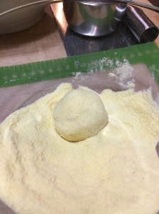 I just looked back on my blog and realized that I hadn’t posted anything since I posted the bologna cake I made to celebrate a good friend’s birthday back in early December.  A lot has happened since December 10th  when I posted that and I need to get back on my blog and share my food adventures.  I subscribe to several food magazines, enjoy watching cooking shows (especially Top Chef and the Chew), and I have way too many cookbooks.  Recently I watched an episode of the Chew where Michael Symon made Gnudi with brown butter and sage and I decided I had to make them.  I told my good friend Jane about them and she decided she had to make them too!!  Gnudi is basically a ravioli without the pasta.  The semolina flour that you roll them in forms a skin so you basically end up with cheesy, buttery goodness.  On television they looked really simple.  They whipped them up in like 15 minutes!  And everyone was smiling and wide eyed and ooohed and aaahed as they ate them.  We all love things with only a few simple ingredients and no complicated instructions, right?  Well.  I would not recommend Gnudi!  But I’m still going to share the recipe, the process, and ultimately the edible outcome.
