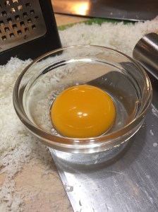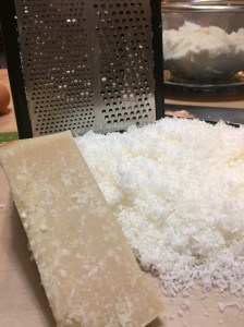 NOTHING.  There is no excess liquid.  There is no liquid at all.  Michael must get special ricotta not available to me here in Michigan’s wilderness.  So okay.  Mine has been pre-drained.  Next I shredded my Parmesan cheese, separated an egg and mixed the cheeses and egg together along with some fresh grated nutmeg.