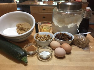 Zucchini. The vegetable that people are always giving away after it has inexplicitly multiplied and grown to ginormous proportions in their gardens. One can only make so many zoodles and side dishes with tomatoes and onions and zucchini boats stuffed with meat and cheese. But everyone loves zucchini bread and cake and other sweets. Zucchini makes for very moist bread and cake and no longer even tastes like a vegetable. Not even a little bit. That’s probably the appeal to many people. This bread is an easy quick bread that is at least a little healthy. The inclusion of nuts and raisins, ground flax seed, and, of course squash, bolsters that claim. And cinnamon. Cinnamon is very healthy! It is loaded with antioxidants and anti-inflammatory properties. You’ll feel so good after you have a slice or two of this tasty bread.
