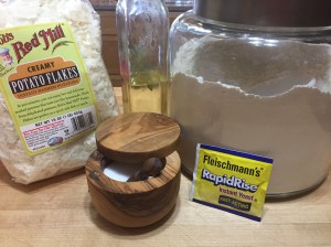 NOTE: King Arthur says this recipe works best with instant yeast because it dissolves during the kneading process. If you don’t have instant yeast, hold back 1/4 cup of boiling water and dissolve yeast in 1/4 cup of warm water. Add to the mixture along with the potato flour/flake mixture.