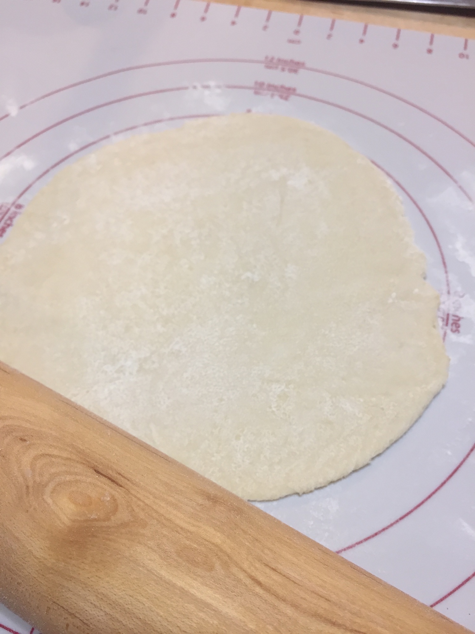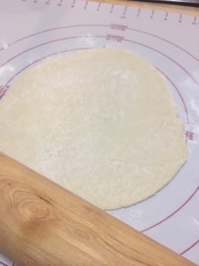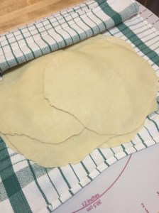 Roll each piece into a 7-8 inch circle. The dough is easy to roll and I did not need to flour my work surface.