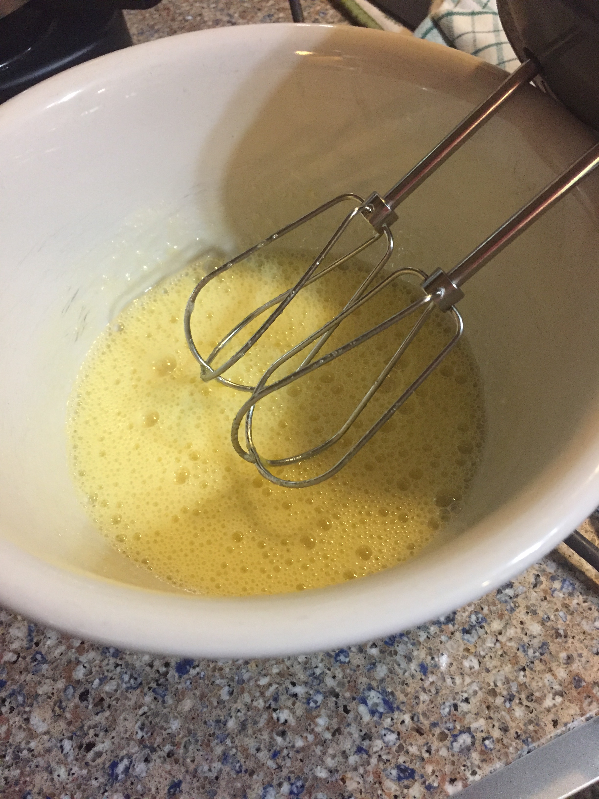 Beat the eggs and sugar together. And yes, a HEAPING 1/2 cup of sugar. First time I’ve seen that in a recipe.