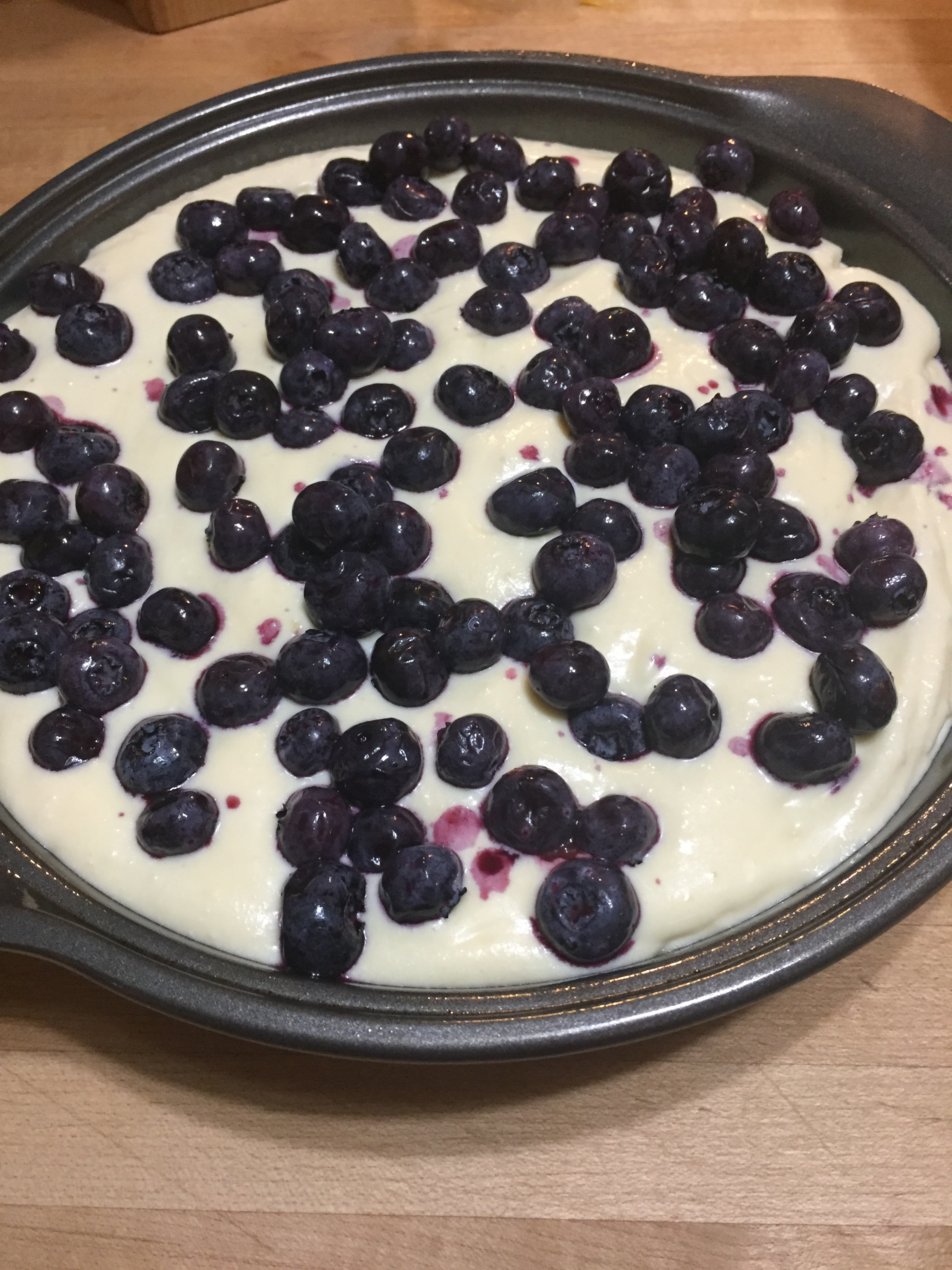 King Arthur has some really great recipes and this one is no exception. They called this a Blueberry Breakfast Cake but I think it’s more like a Fruit Danish. I used blueberries, which the recipe called for, but this would be great with raspberries, apple, peaches…almost any fruit. Because of the ricotta cheese and sour cream it has a consistency similar to a cream cheese danish. It is simple to make and not cloying. Great with a cup of coffee or a glass of milk.