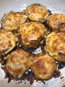 Wipe out the skillet or use another casserole dish. Return the rounds to the skillet and top with sauce and cheese.