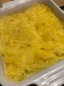 Bake at 350 for 25 minutes. Put the spaghetti squash in the oven for the last 5 minutes to warm.