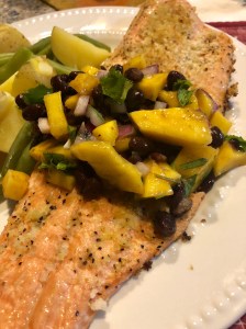 This has long been one of my favorite compliments to grilled fish. It’s easy to pull together, adds nice color to your plate, and has a great fresh flavor. It would also be an excellent addition to a pork loin or chop. You might think it an odd combination but it works!