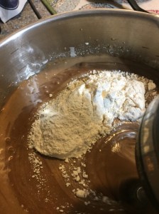 Alternate flour mixture and coffee/cocoa mixture beating after each addition and beginning and ending with flour.