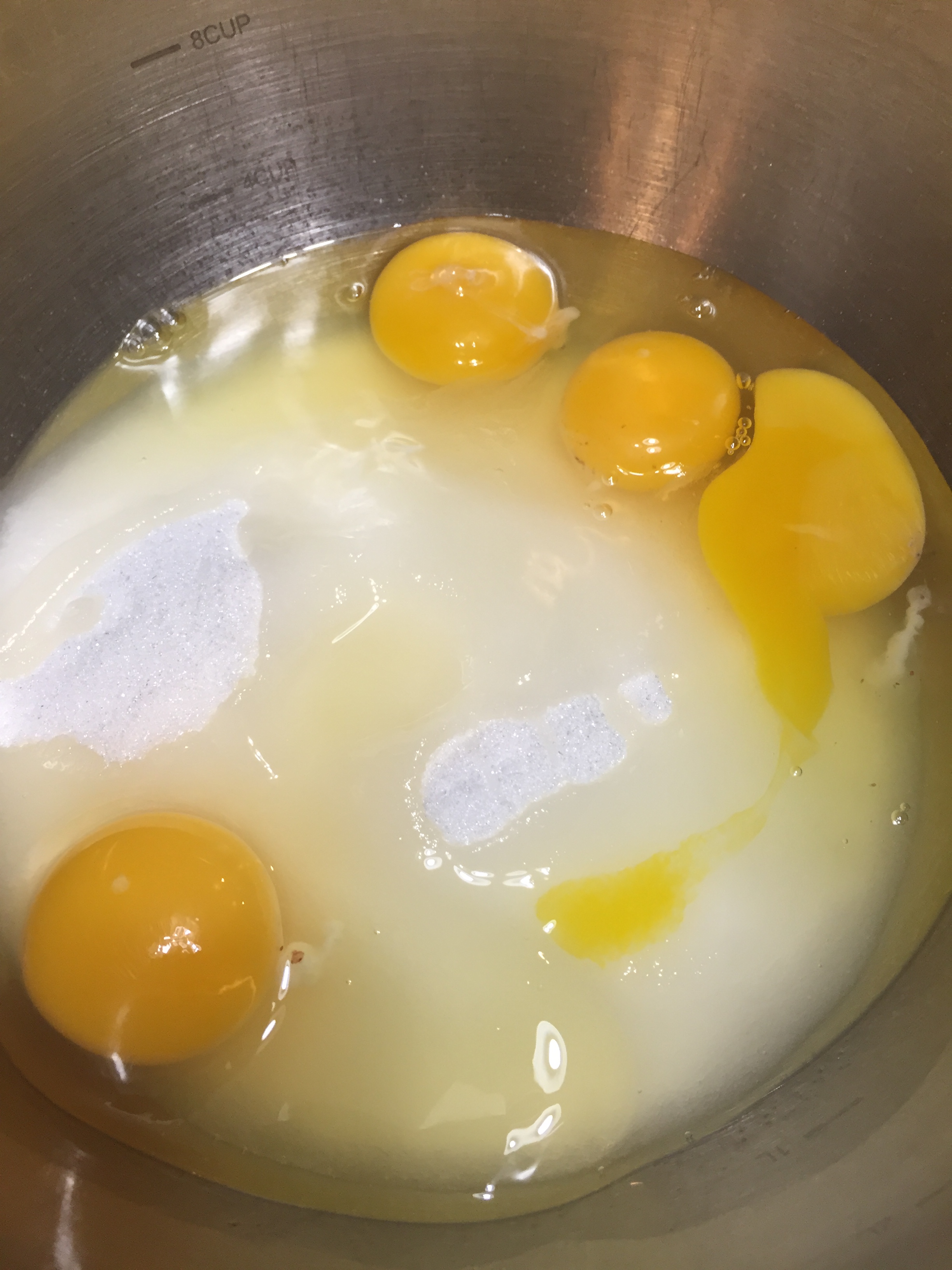 In a large bowl combine the sugar and eggs. Beat on medium speed until light and fluffy, about 4 minutes. Beat in the mayonnaise and vanilla.