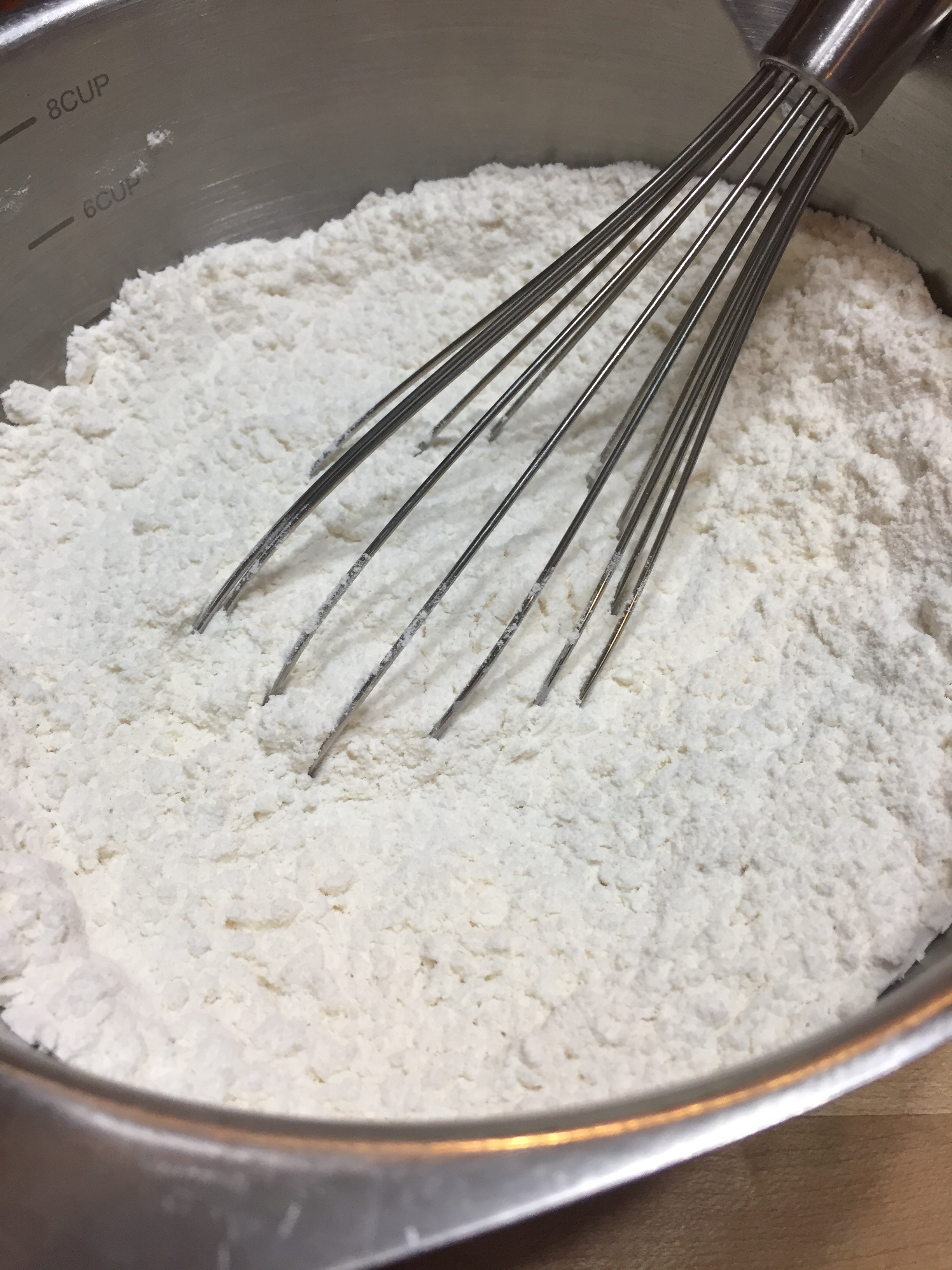 In a separate bowl, whisk together the flour, soda, baking powder and salt.