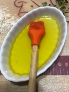 Generously brush the eggplant with olive oil and season with salt and pepper.