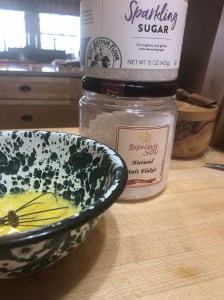 Reading the ingredients you may ask, “what is caster sugar?” It is superfine sugar. I didn’t have any, so I made my own using my coffee grinder.