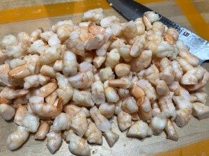 Dice your shrimp. You can save a few whole shrimp for garnish if you’d like.
