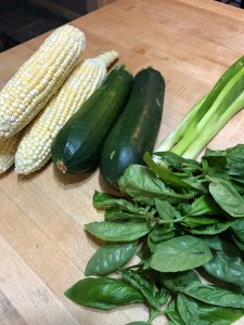 Also, although one of the three sisters is winter squash, this recipe called for zucchini.  And there is plenty of that available this time of year.