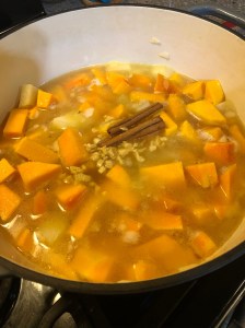 You want the squash and other vegetables to be nice and soft. At this point you’ll want to remove and discard the cinnamon sticks.