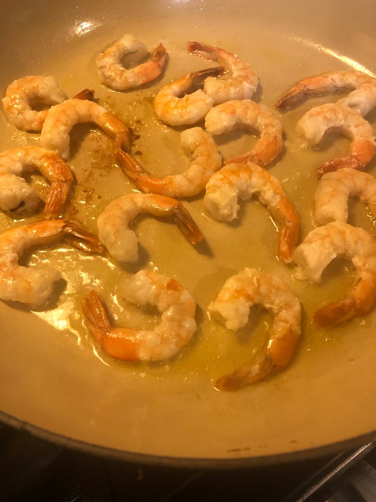 NOTE: I cooked the shrimp with tails on but before adding the shrimp back into the pasta I removed them. Much more enjoyable when you don’t have to remove them while you’re eating.