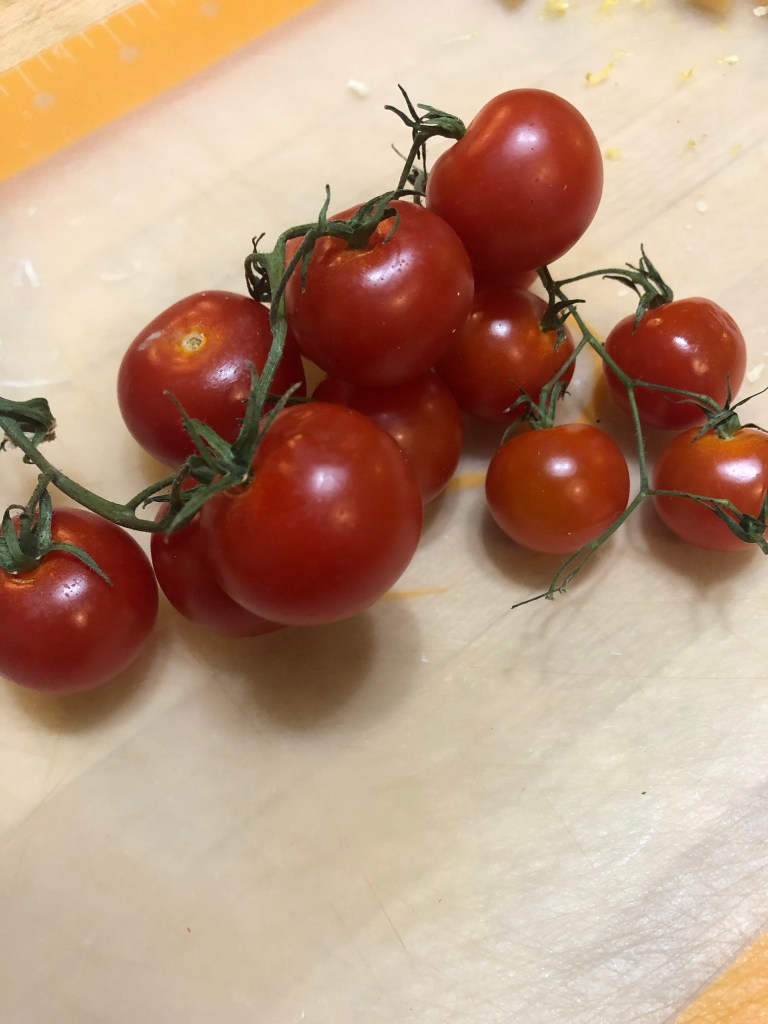 To add a little more color and because we love tomatoes, I sliced about a cup of cherry tomatoes and added them to the skillet just before serving.