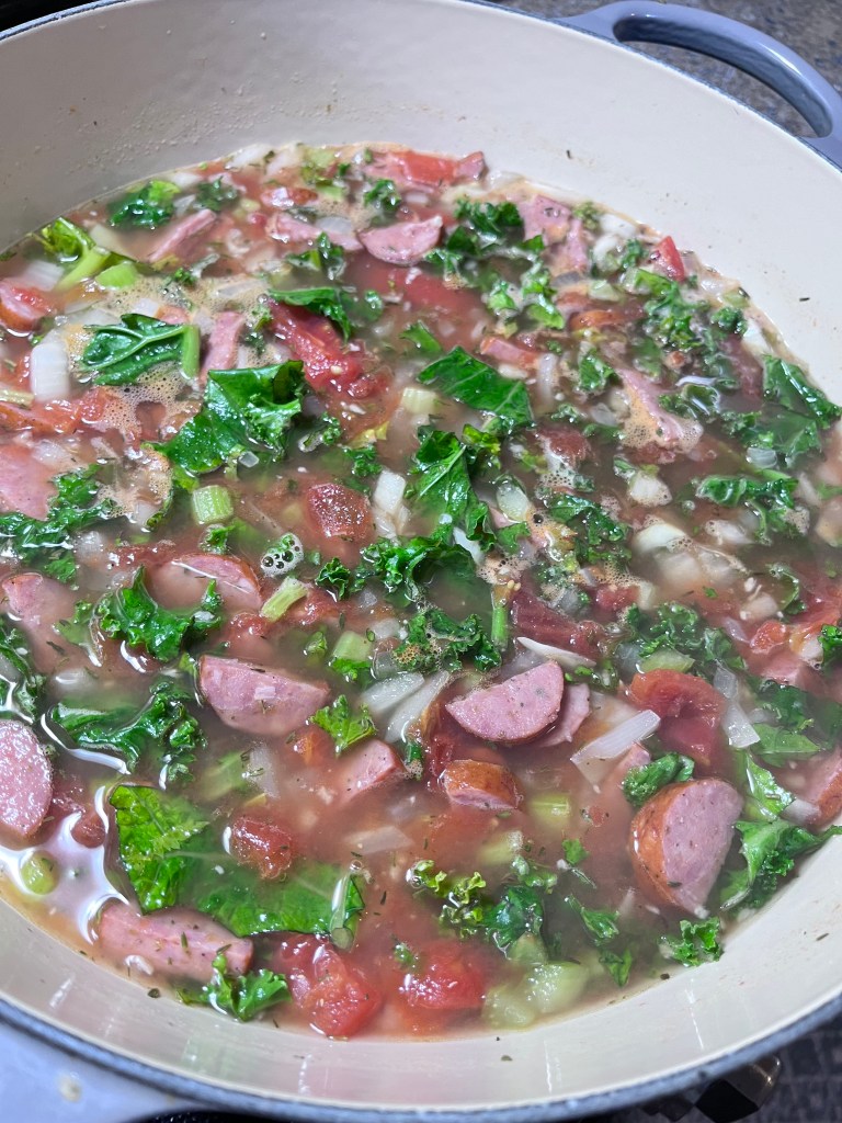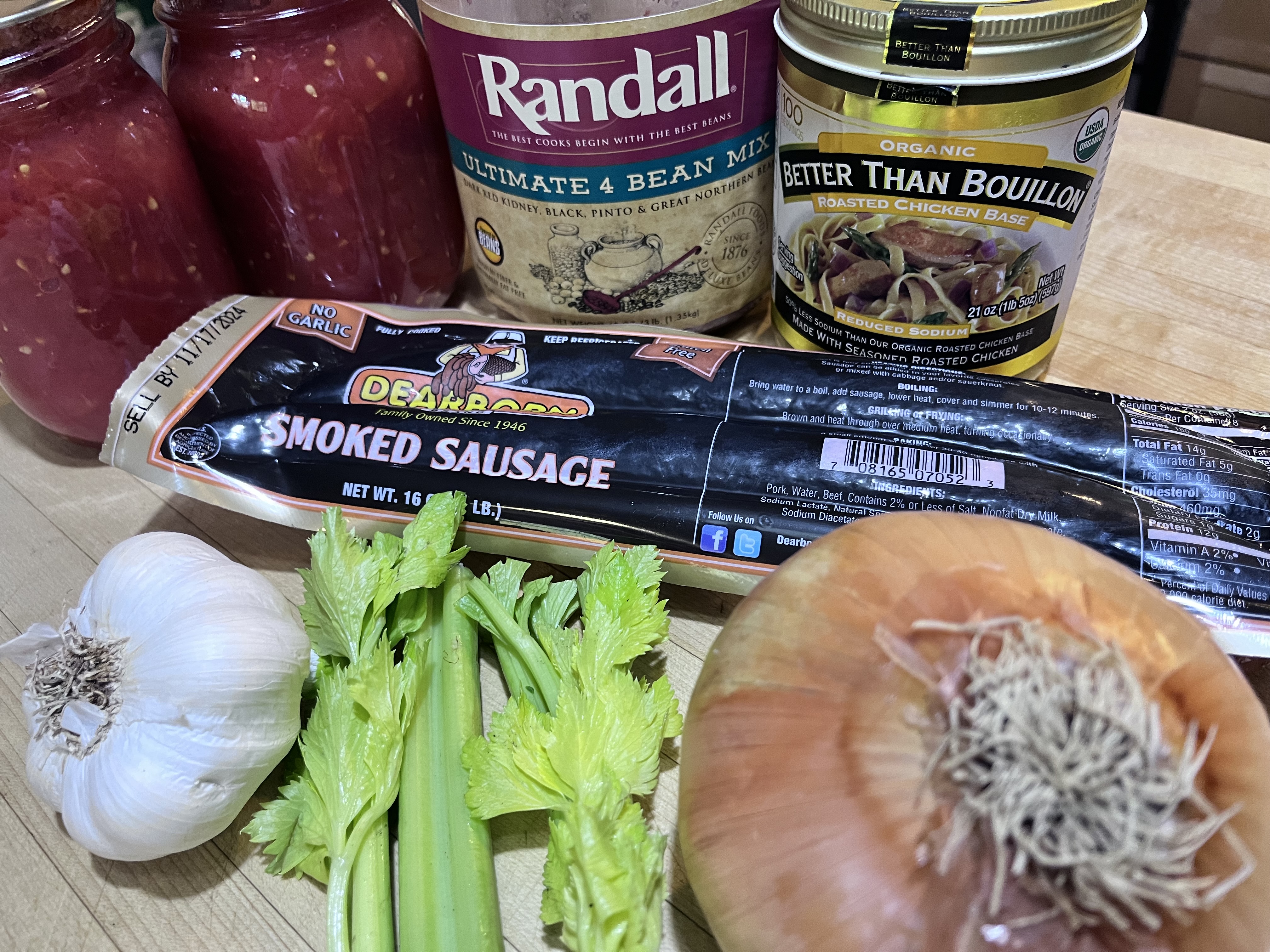 NOTE: Great served with some crusty bread and a bit of fresh grated parmigiana. I used Michigan smoked sausage from Dearborn, but feel free to use your favorite. You can also add additional vegetables like diced carrots or potatoes.