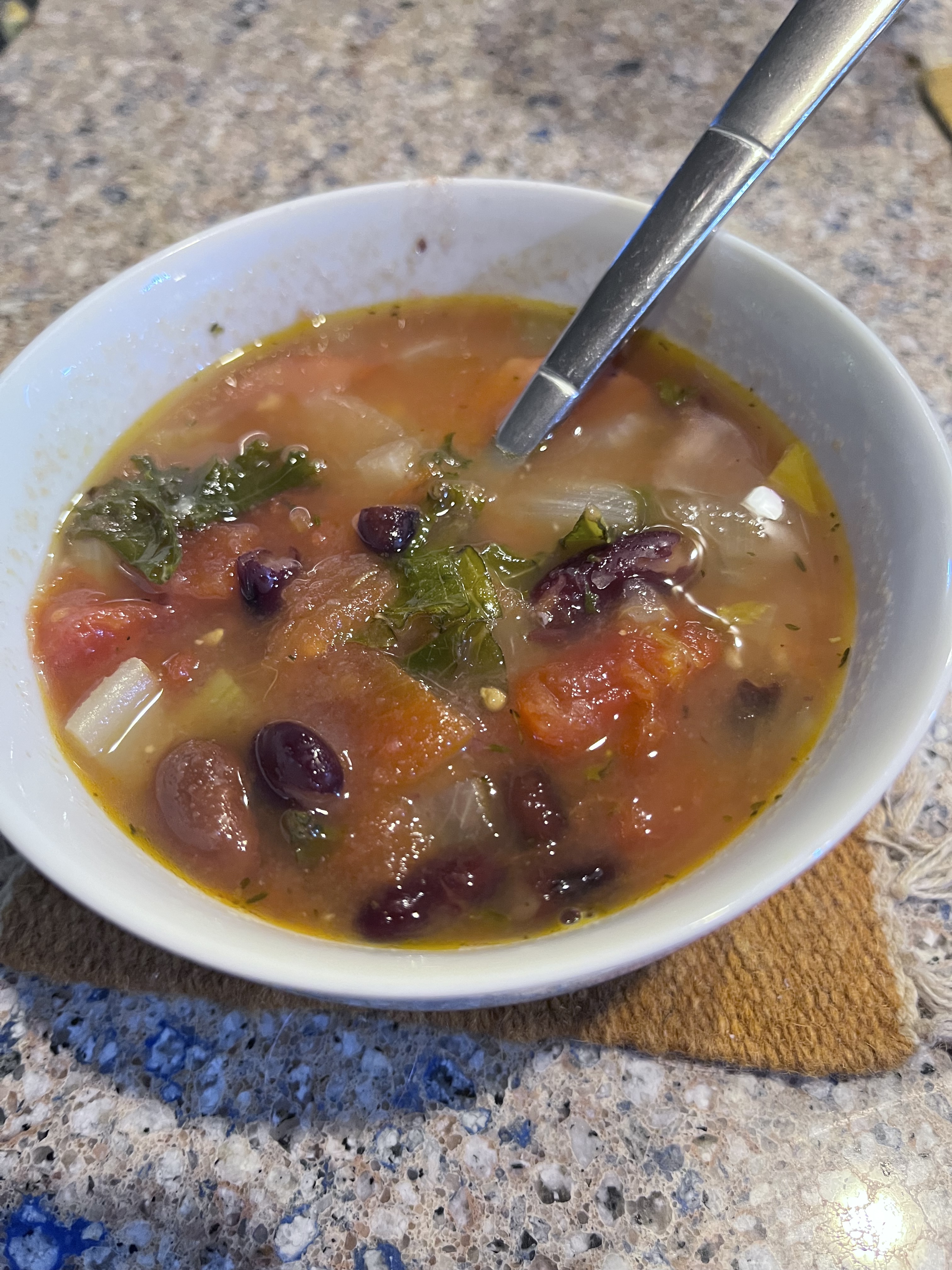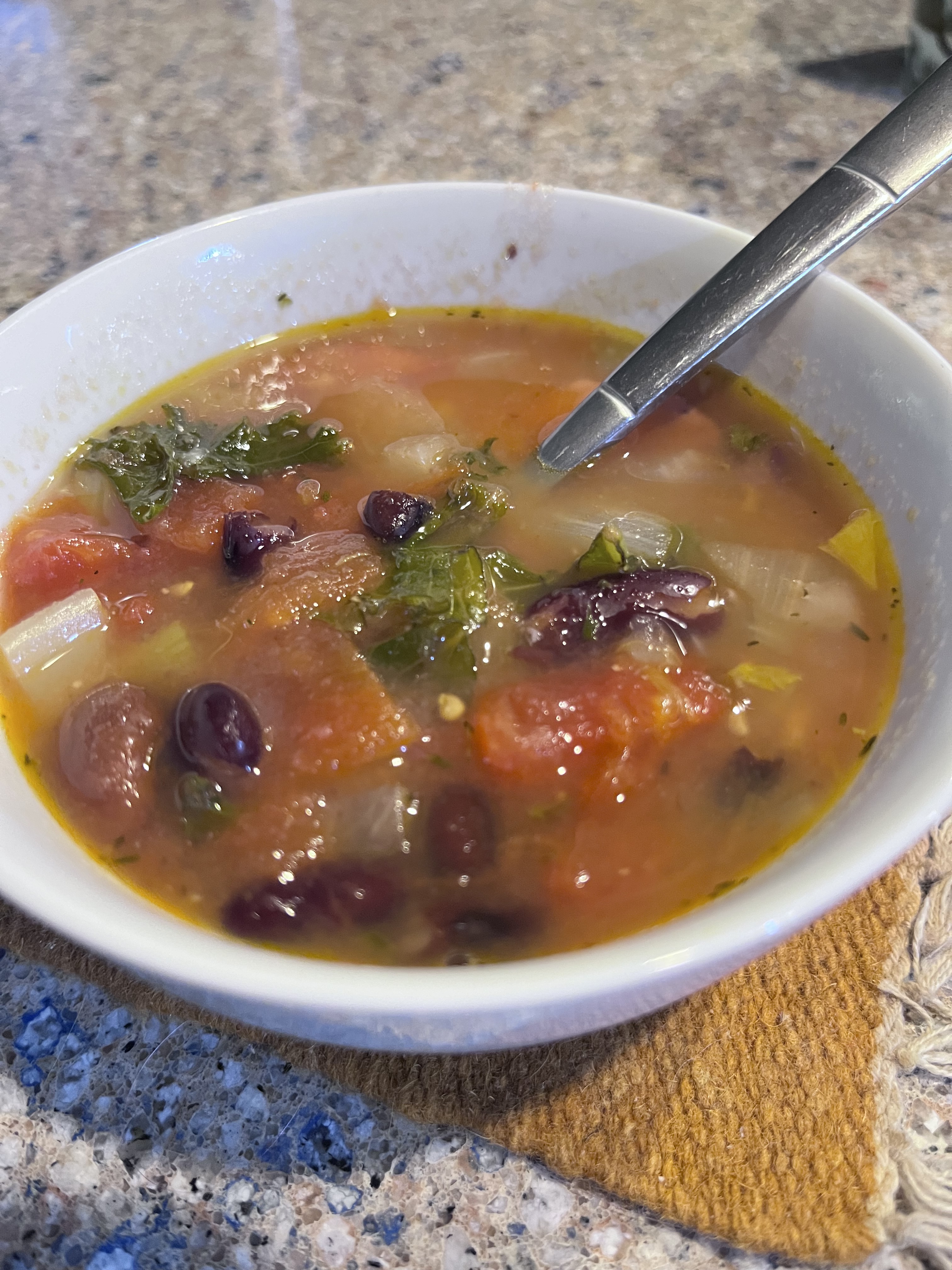 Another “it’s soup weather” recipe, and I do love soup weather. I’ve been making this soup for years, and I’m pretty sure it was a recipe I found on a jar of Randall’s beans. I must tell you, a jar of Randall’s beans is a great grocery find. They are perfect for soup, refried beans, and baked beans. Randalls do the soaking and cooking for us…so easy to use and delicious to eat. Beans are a great source of plant protein, fiber, vitamins, and minerals and they’re low in fat. As an added benefit, beans are great colon cleansers. 🙂 All beans are considered legumes, but not all legumes are considered beans. For instance peanuts are not really nuts, they are actually legumes…edible seeds that grow in pods. Personally, beans and nuts are more appetizing words than legumes, so bean soup it is.