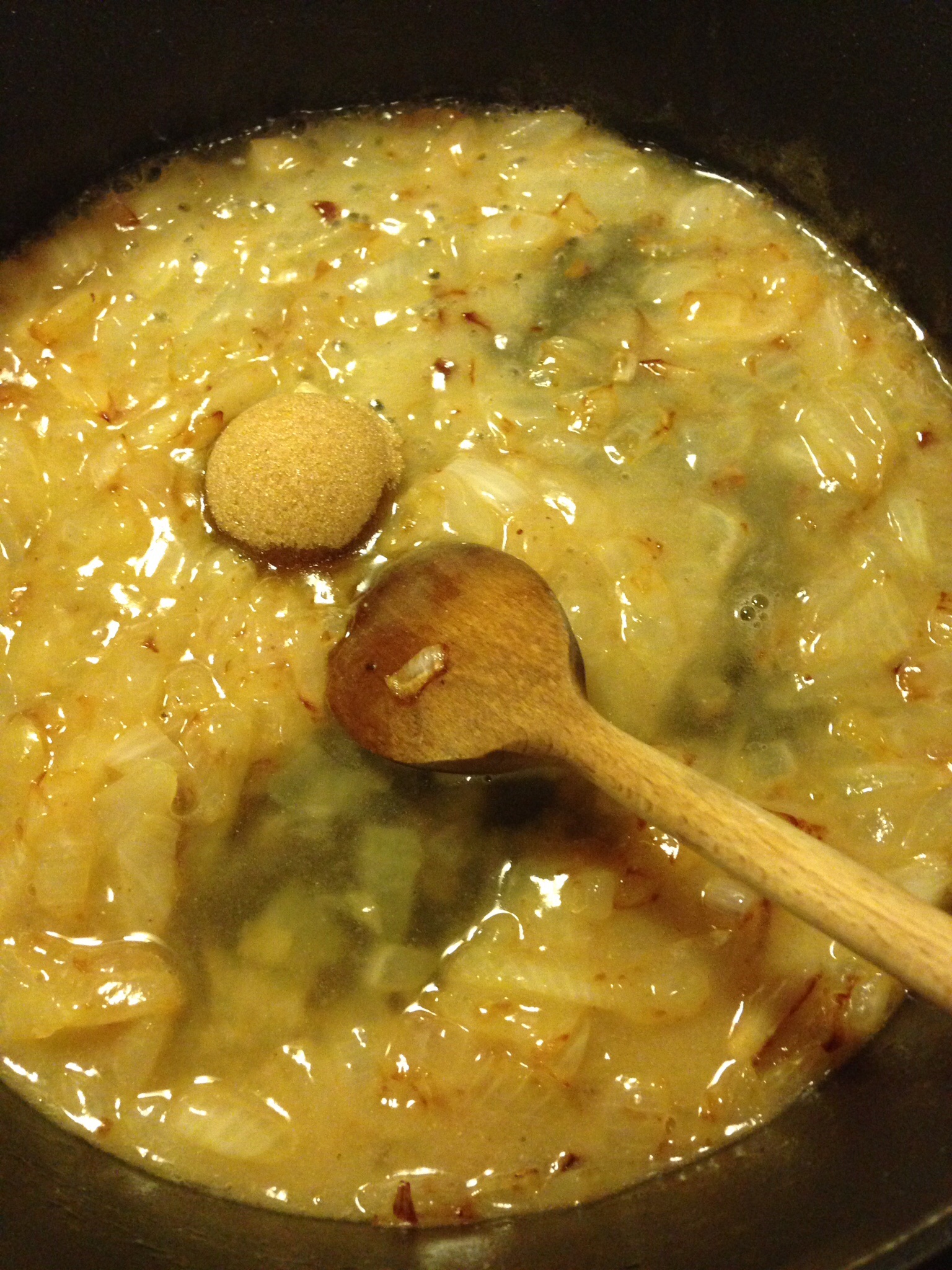 Once the cabbage has finished cooking combine 2 T corn cornstarch with a little cold water. Whisk together and add to the cabbage. Simmer until the juices have thickened.
