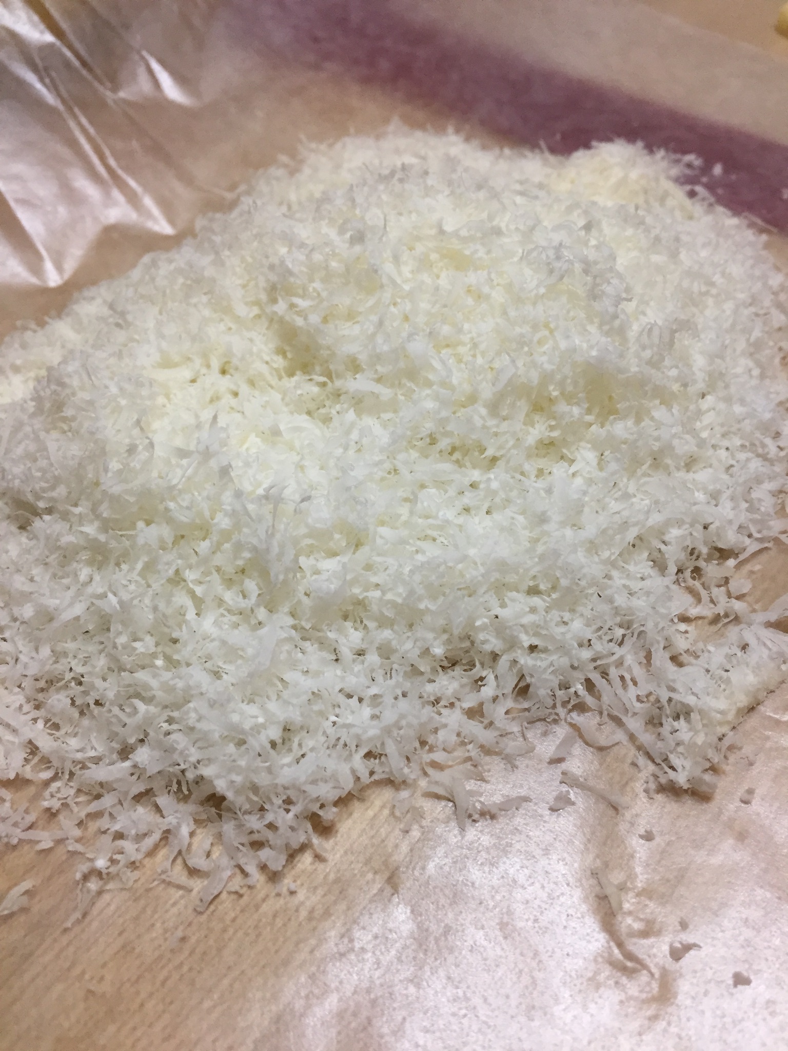 Get out a large Dutch oven or heavy kettle. Remove outside leaves, cut, core, and slice the cabbage.