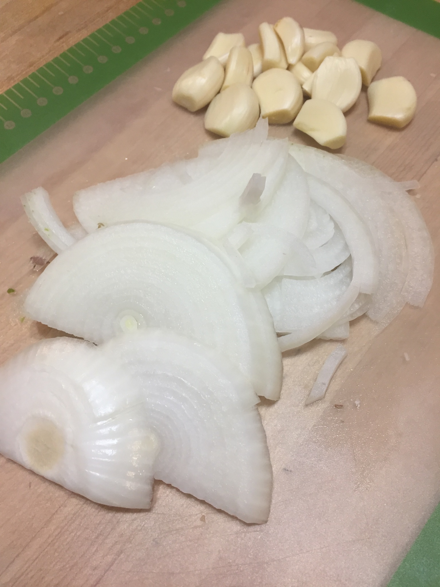 Slice the red onion and peel, core, and slice the apples. I used Granny Smith but any good, firm apple will do.