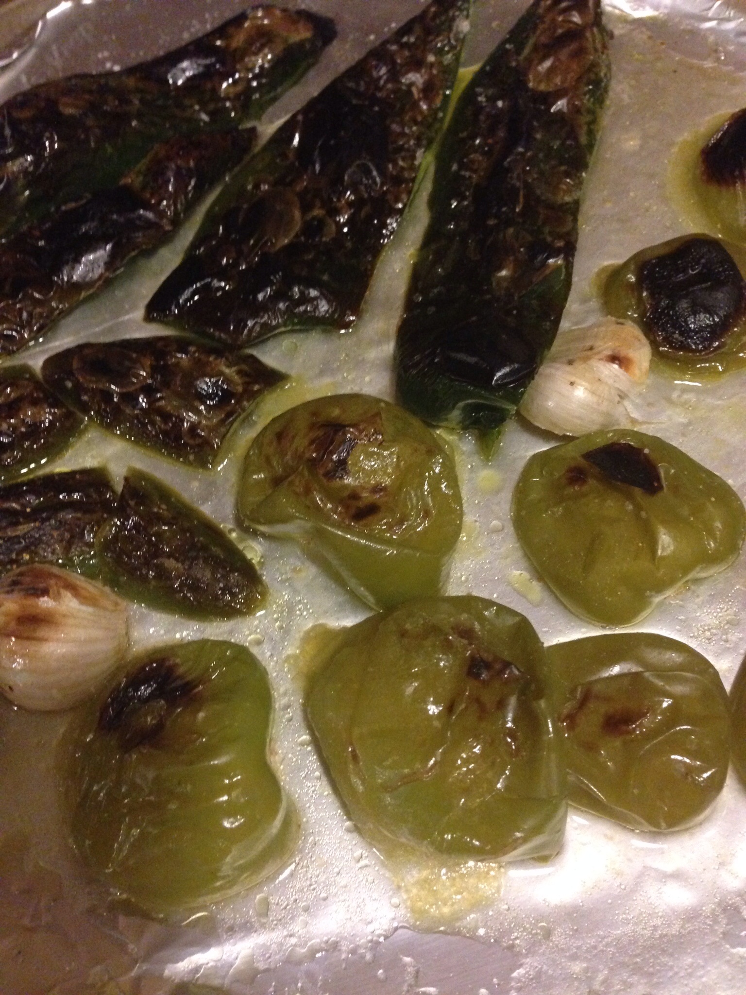 I line a large baking sheet with foil, preheat my oven to 425, spread the peppers out and roast them until they have a nice char on each side.