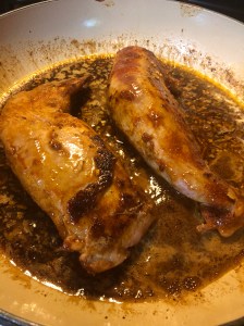 I served ours with broccoli and cranberry sauce. Because, if it’s chicken or turkey, there has to be cranberry sauce.