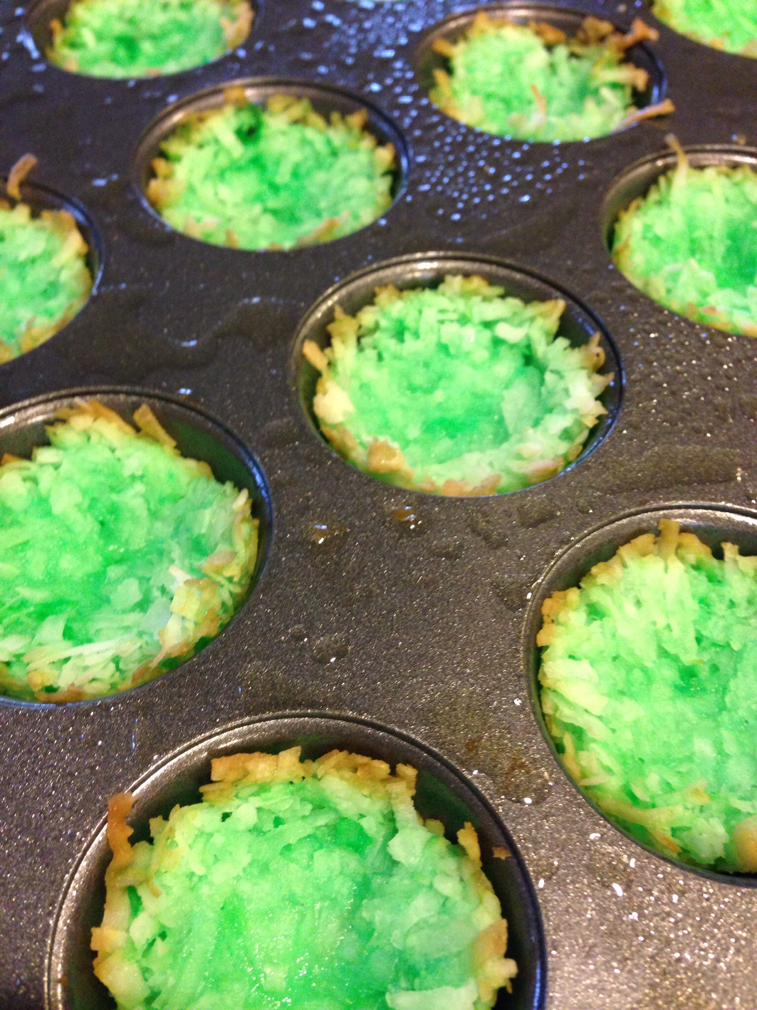 Distribute the batter among the 3 pans, spreading it out evenly with the bottom of a spoon or offset spatula.