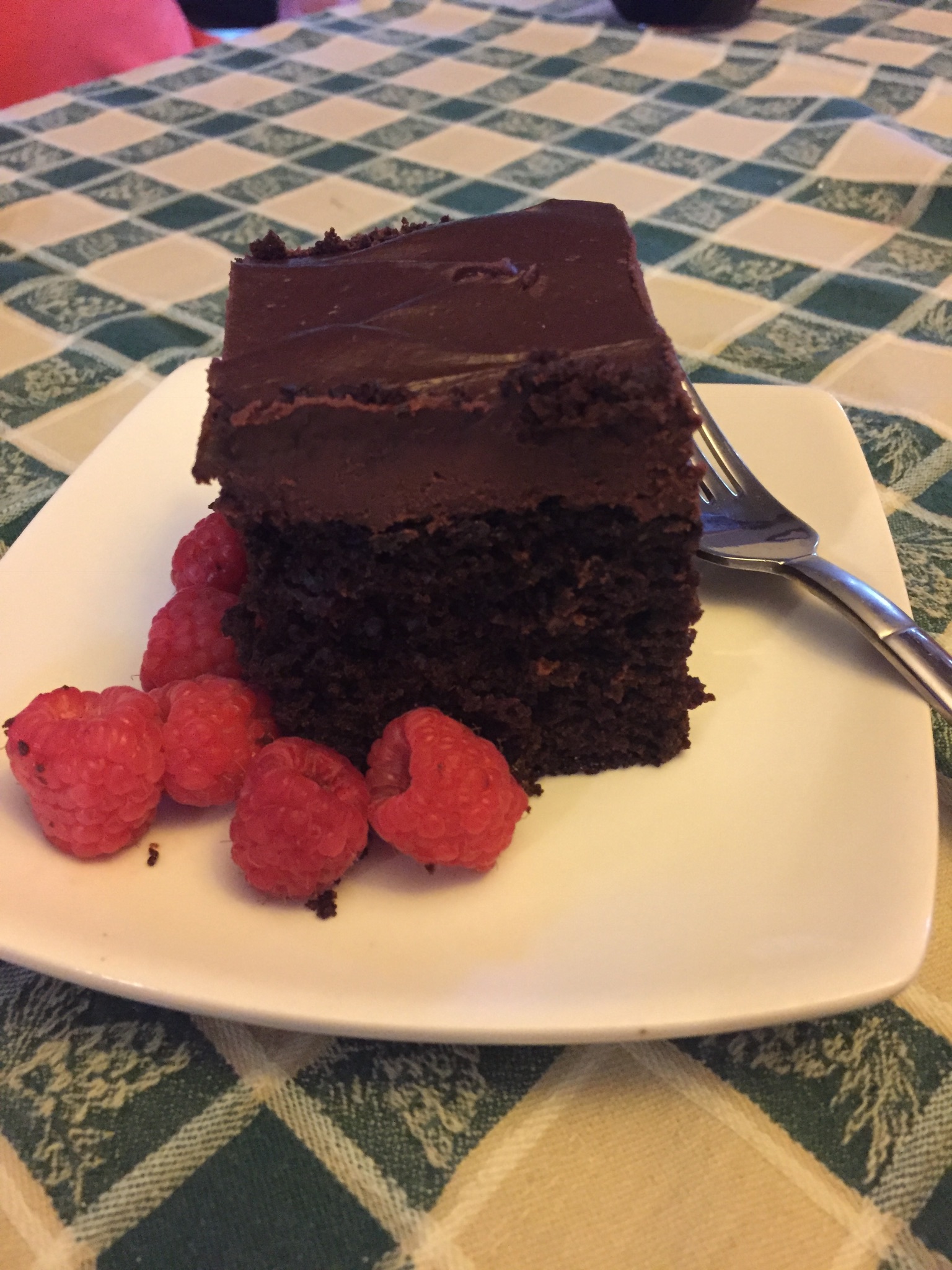 We used to regularly go out for breakfast on Sunday mornings, but since we adopted Leo, our rescue pup, I’ve been making our bacon and eggs at home. After breakfast and clean up I enjoy watching a couple of shows on the food network…Mary Makes it Easy, The Kitchen, and, most recently, Girl Meets Farm with Molly Yeh. Molly lives on a farm on the North Dakota-Minnesota border, and is a Juilliard music major turned food blogger. Her blog became very popular, and Saveur named her Food Blogger of the Year in 2015. This is a recipe from a recent episode of Girl Meets Farm that sounded very interesting, and I had to try it. We have a group of friends that we regularly get together with on Saturday nights, and we were celebrating three birthdays. It was a perfect time to try Molly’s Chocolate Beet Cake recipe. When I served it I left out the part about the beets because we have anti-veg folks as well as people who just plain old don’t like beets. I have made a chocolate sauerkraut cake and a chocolate zucchini cake before, but using beets never occurred to me. Save for a couple of slices the cake was devoured. Chocolate meets beets for a delicious smash up! Full credit for this recipe goes to Molly Yeh! Thank you for sharing your food Molly.